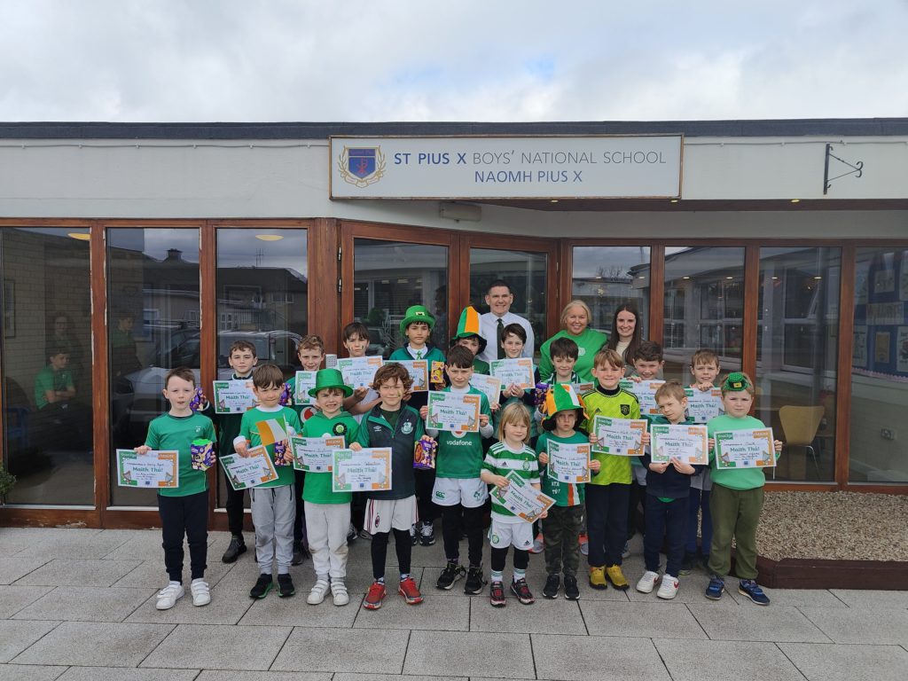 Inniú bhronnadh duais ar Gaeilgeoirí na seachtaine. Bhí buaiteoir amháin i ngach rang sa scoil agus bhronnadh ubh cásca agus teastas orthu mar gheall go raibh siad ag déanamh a gcéad ndícheall iarracht an Gaeilge a labhairt agus a scaptha ar feadh na seachtaine. Féach ar an bpictiúr de na buachaillí a bhuaigh ‘Gaeilgeoir na seachtaine’ ina rang.