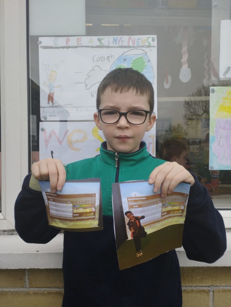 Senan in Ms. Pleamonn’s class came 1st recently in a golf competition in Dublin. He puts his success down to all the training he does, chipping an putting. Could we have a future Rory McIlroy on our hands.