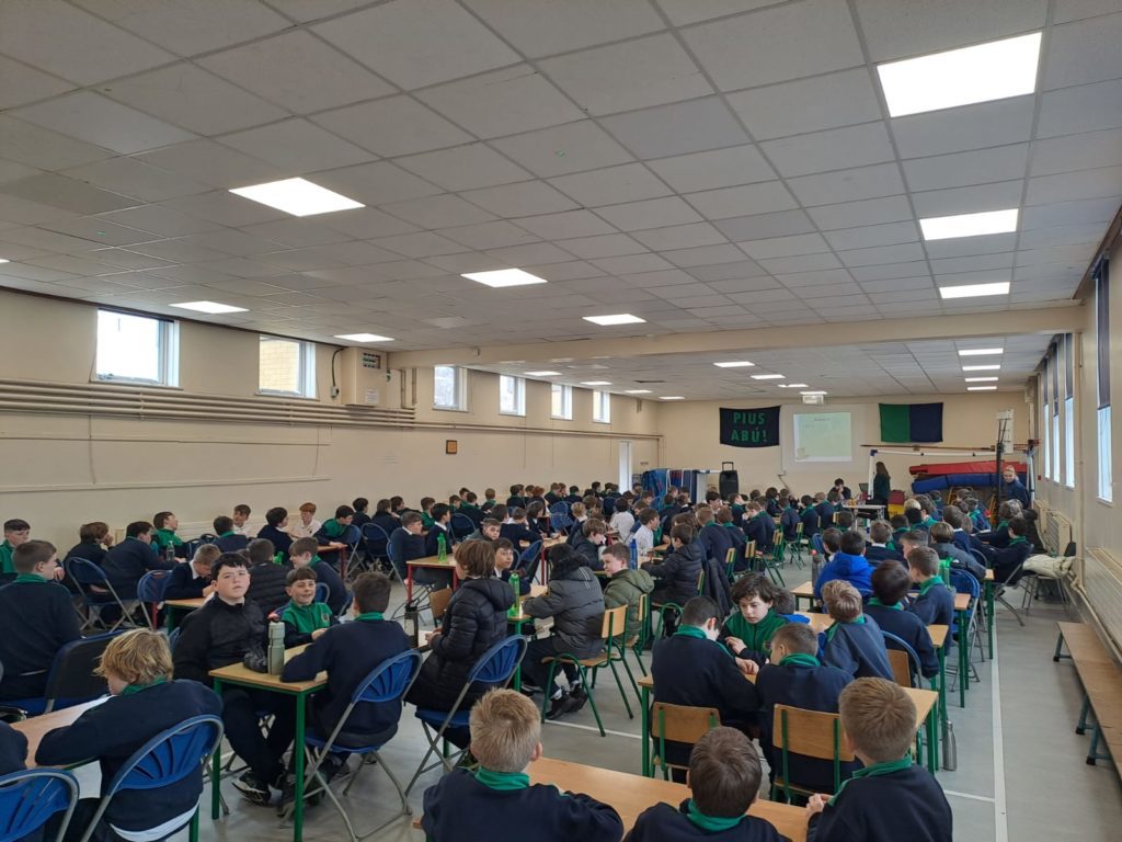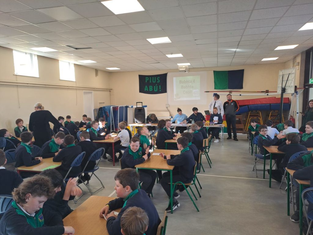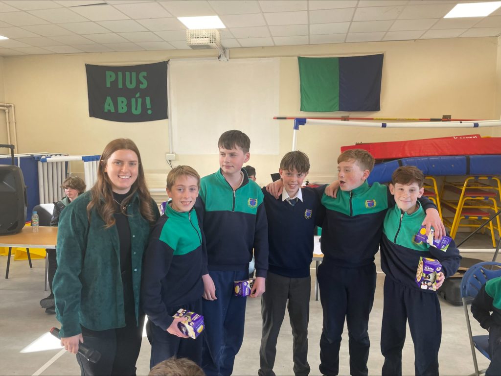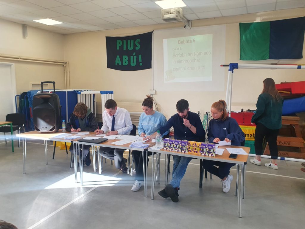 Bhí Tráth na gCeist ar súil le rang a cúig agus rang a sé i halla na scoile ar an Máirt. D’eagraigh Ms Brogan é agus bhí ceisteanna an-deacair ar fad ann. Bhí cúig babhta in iomlán sa Tráth na gCeist agus babhta pictiúir agus ceol san aireamh. Bhí a lán craic ann agus ar deireadh, bhuaigh Henry, Ronan agus Odhran i rang Mr Cunningham Tráth rang a cúig agus bhuaigh Oisin, Cian, Conor, James agus Oscar Tráth rang a sé. Míle Buiochas le Ms. Brogan, Máistir an Tráth na gCeist!