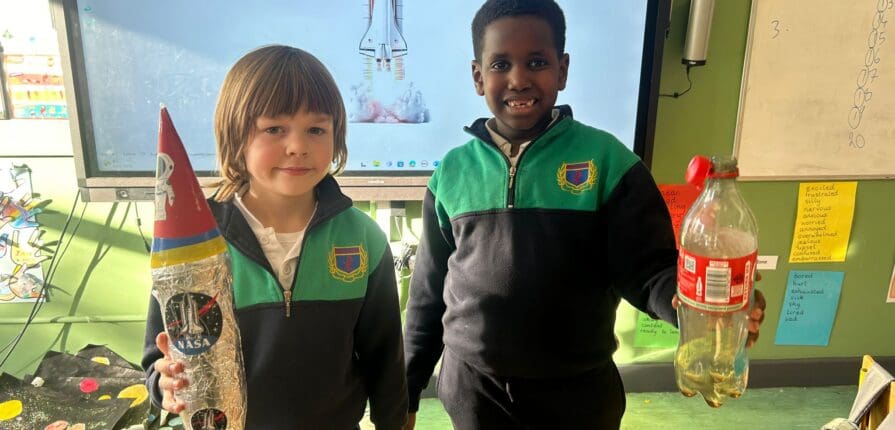 The boys in Ms. O Sullivan’s class created some very impressive rockets as part of their recent science lessons. The boys had great fun looking at different designs and had a special launch on the infant yard. Well done boys.