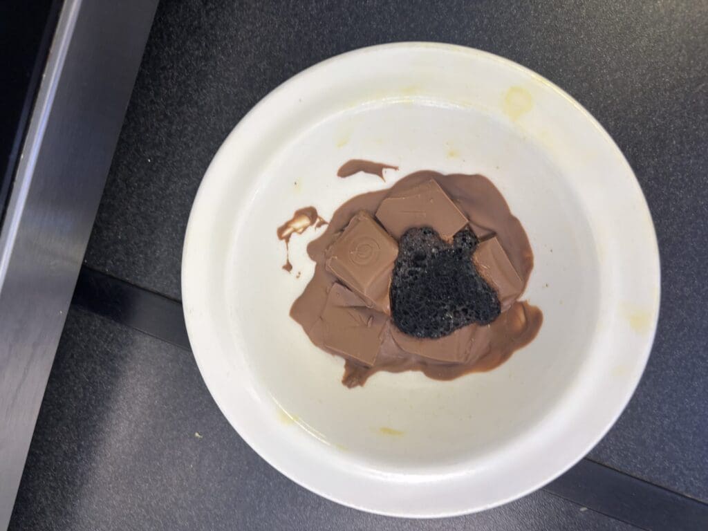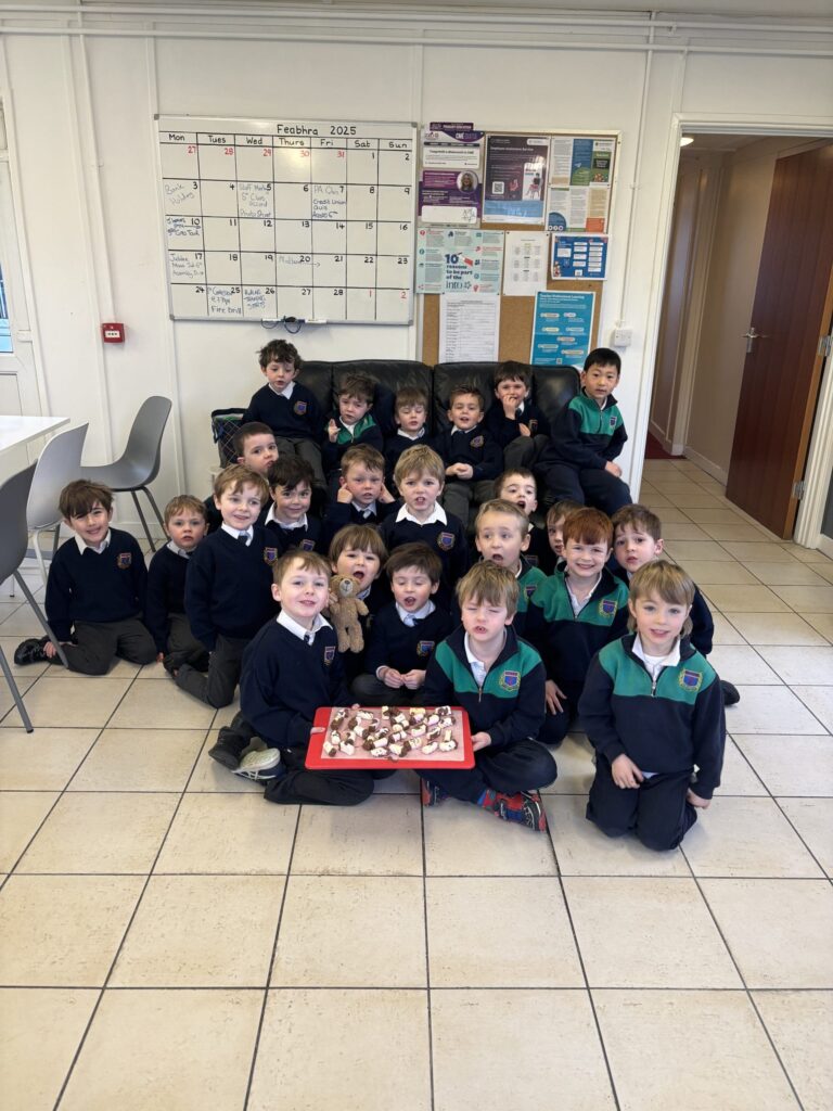 Ms. Weeney’s junior infant boys learned all about solids and liquids today. Then they investigated what happens when chocolate is heated. They also accidentally discovered what happens when chocolate gets too hot. Nothing goes to waste in St. Pius X so the boys used their melted chocolate to make chocolate covered marshmallows. Yum!