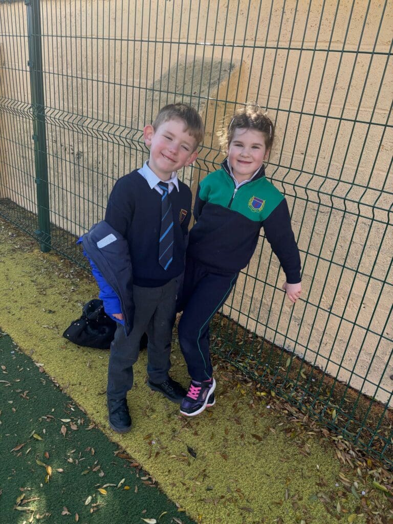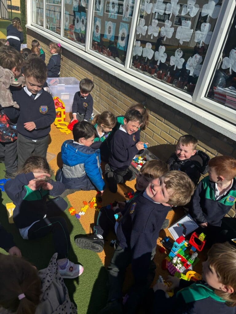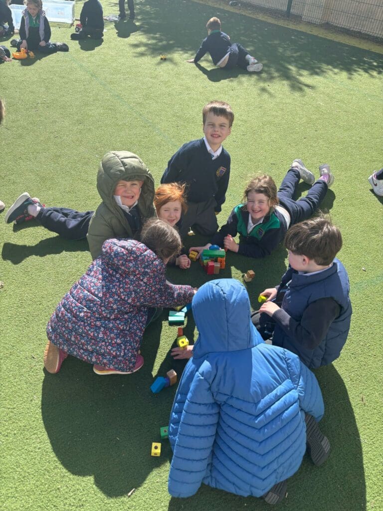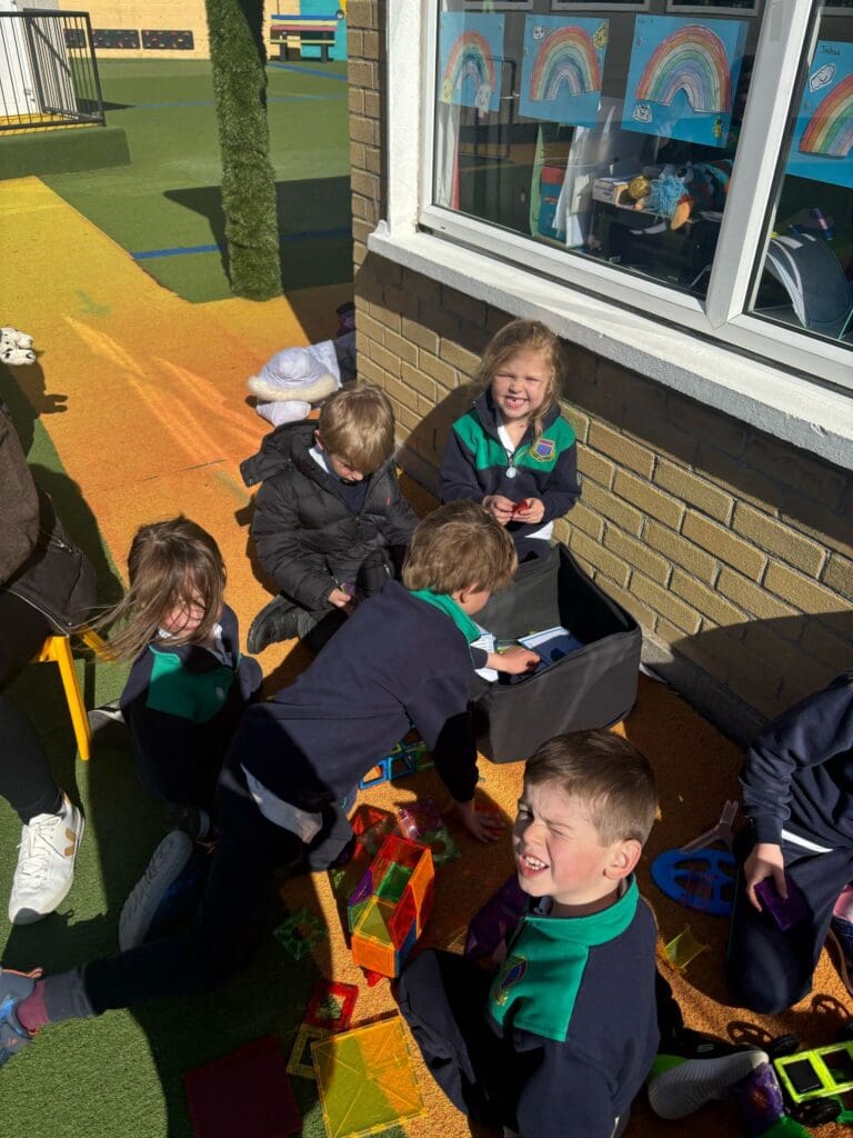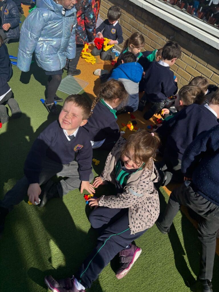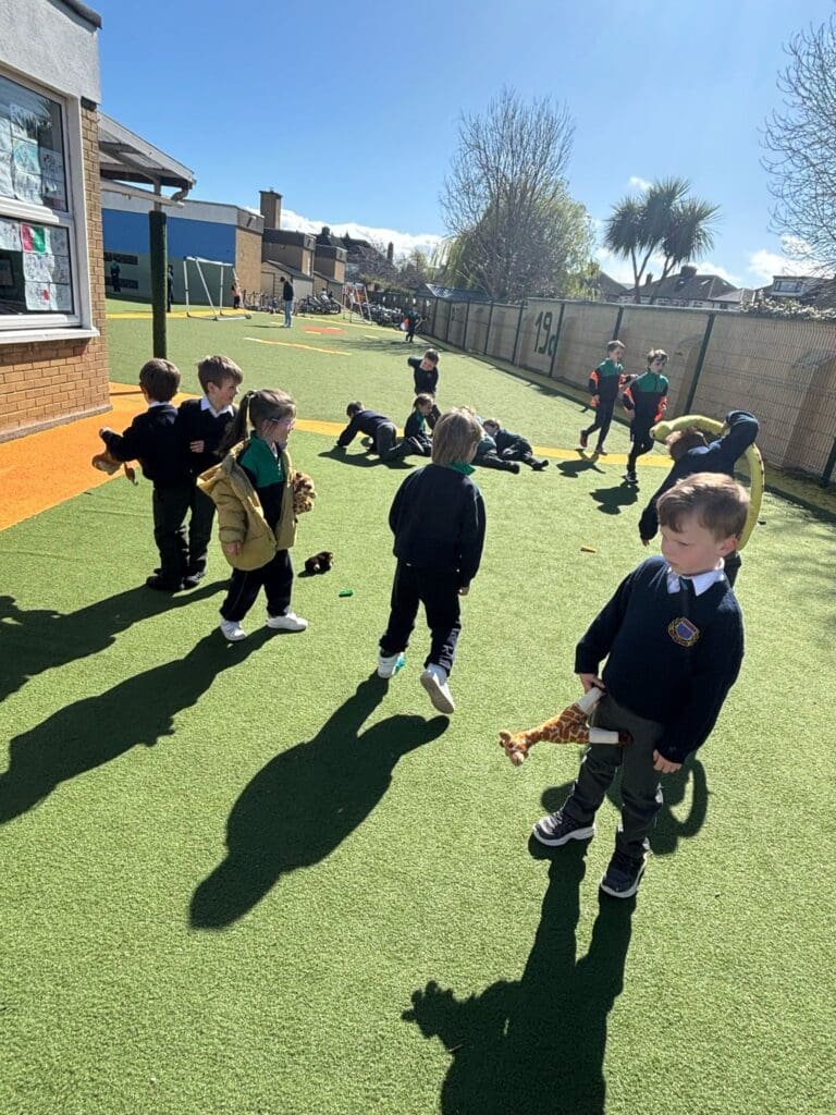 Ms. Brogan, Ms. Gallagher and Ms. McWeeney’s junior infants met up with their counterparts Ms.Godson and Ms.Carney’s junior infants from the girls school. They had great fun introducing themselves and making new friends. They can’t wait for the next playdate in their new friends yard next time.