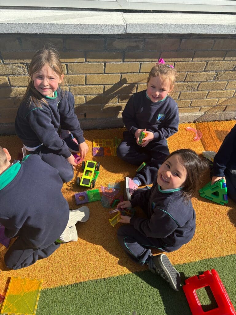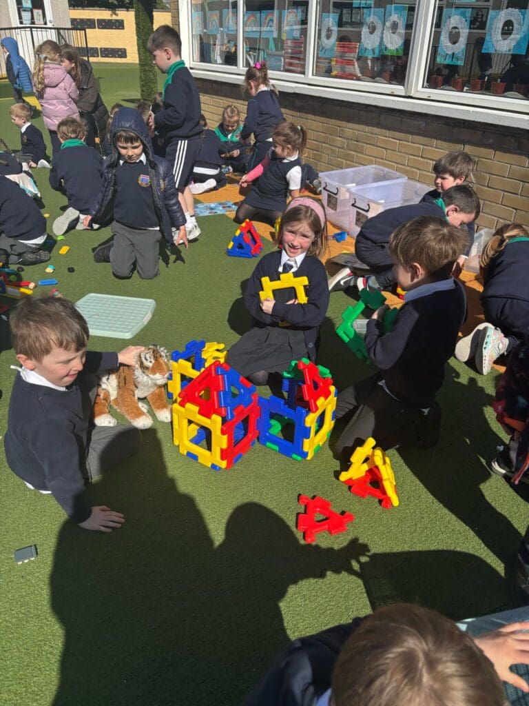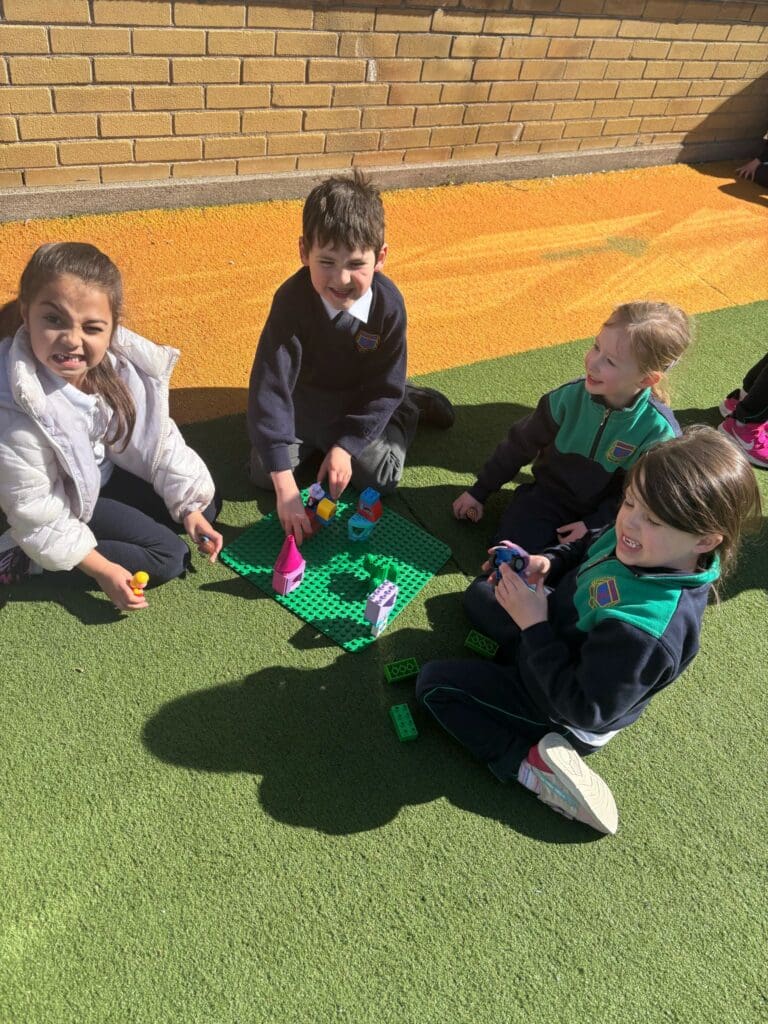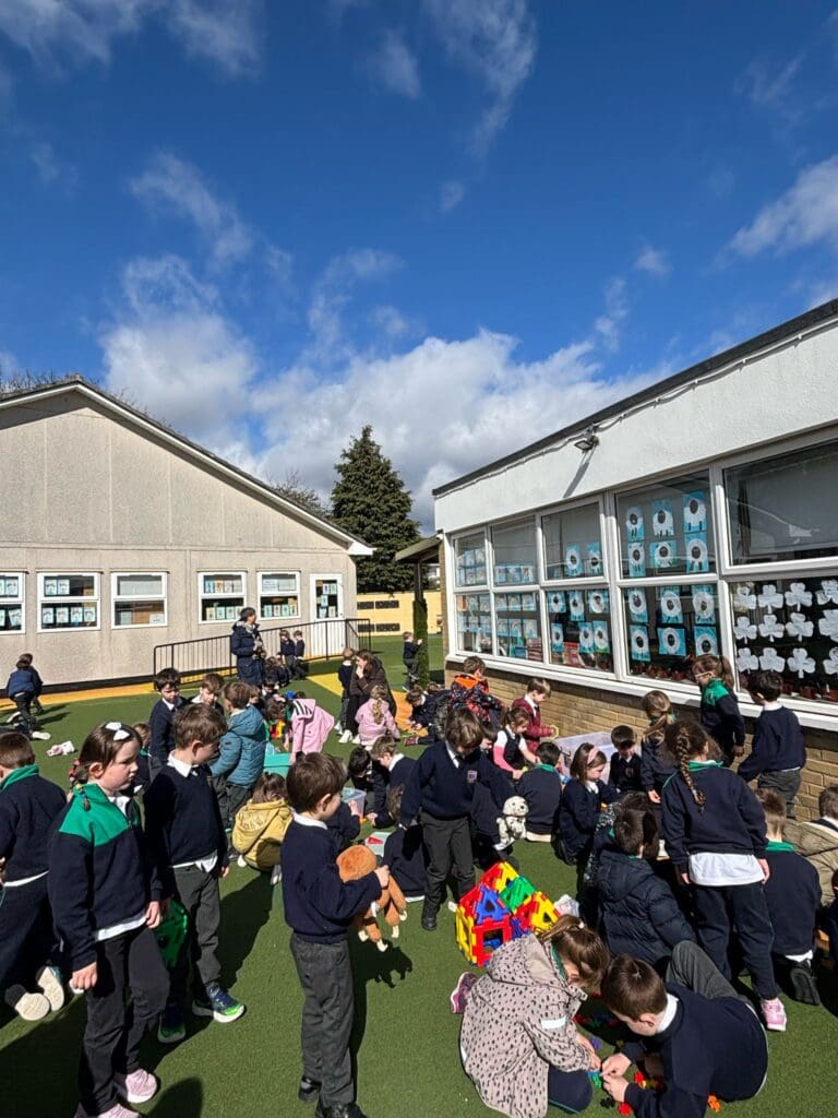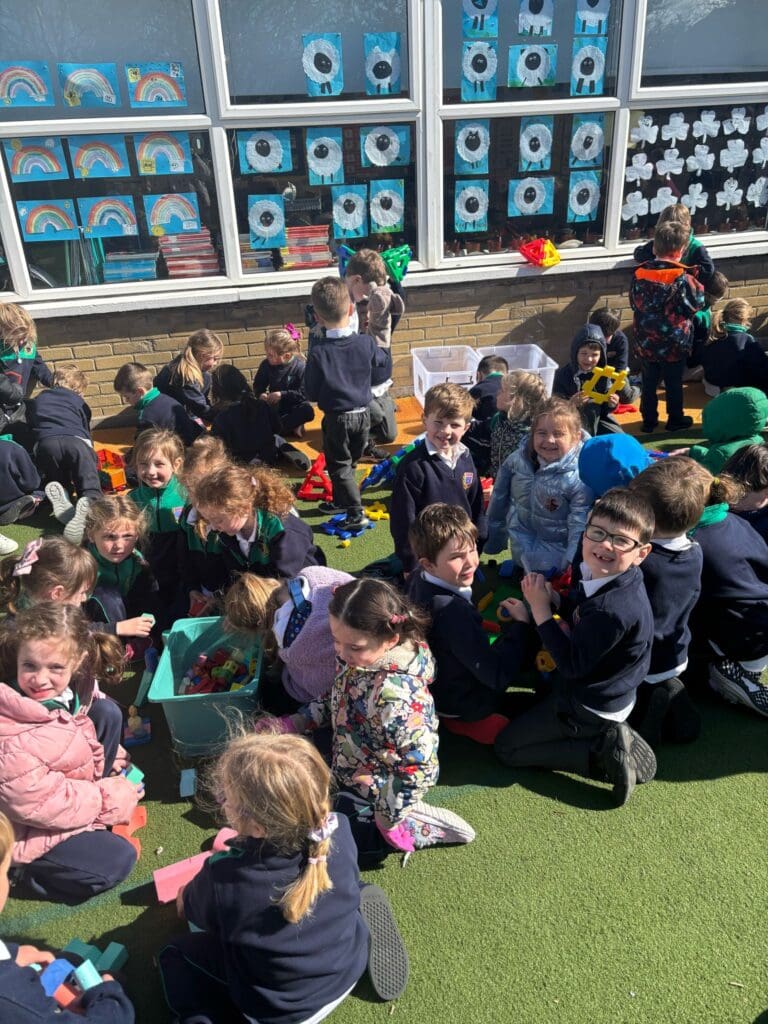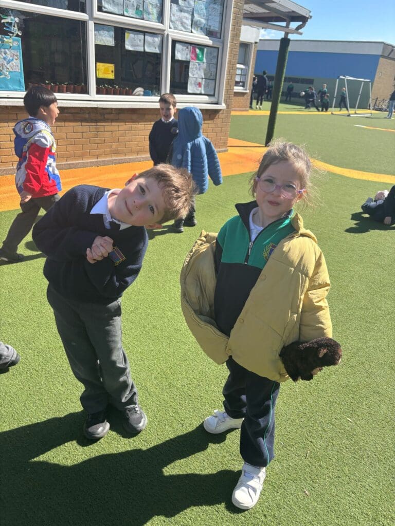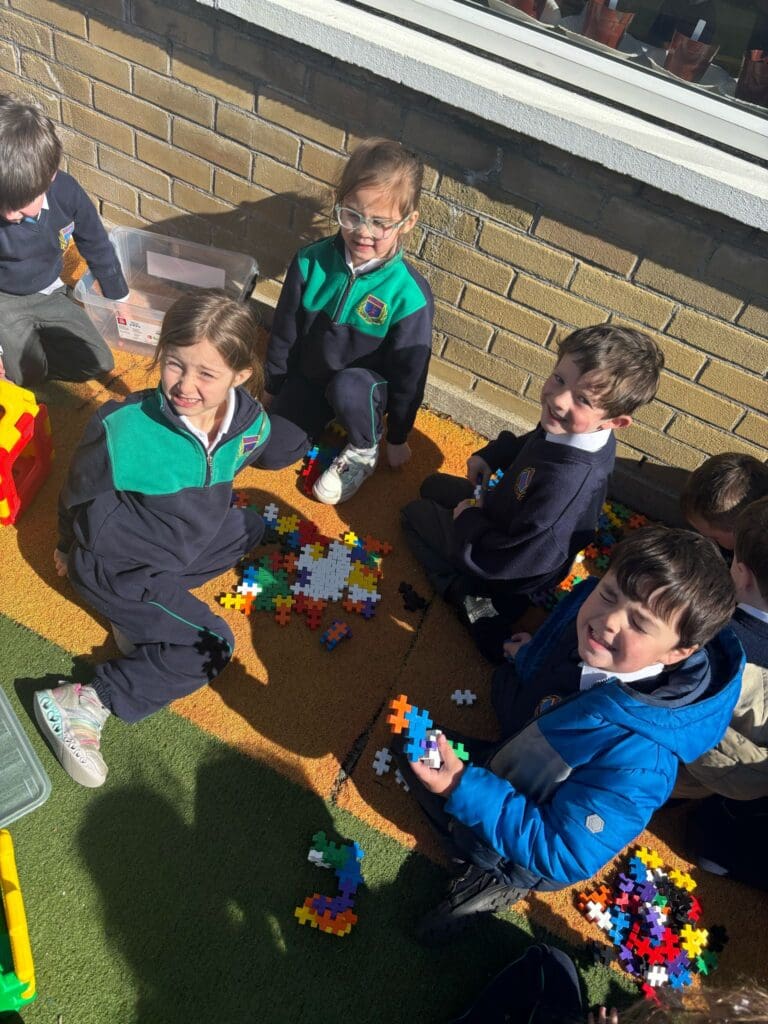 Ms. Brogan, Ms. Gallagher and Ms. McWeeney’s junior infants met up with their counterparts Ms.Godson and Ms.Carney’s junior infants from the girls school. They had great fun introducing themselves and making new friends. They can’t wait for the next playdate in their new friends yard next time.