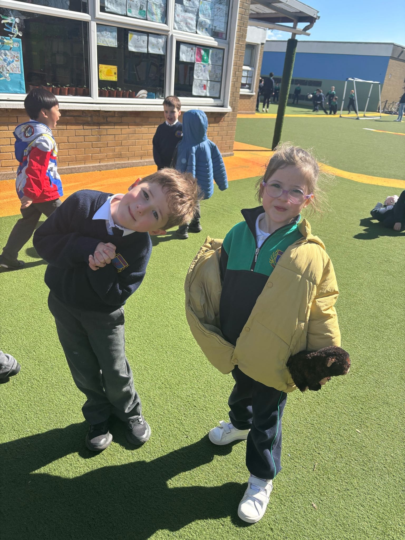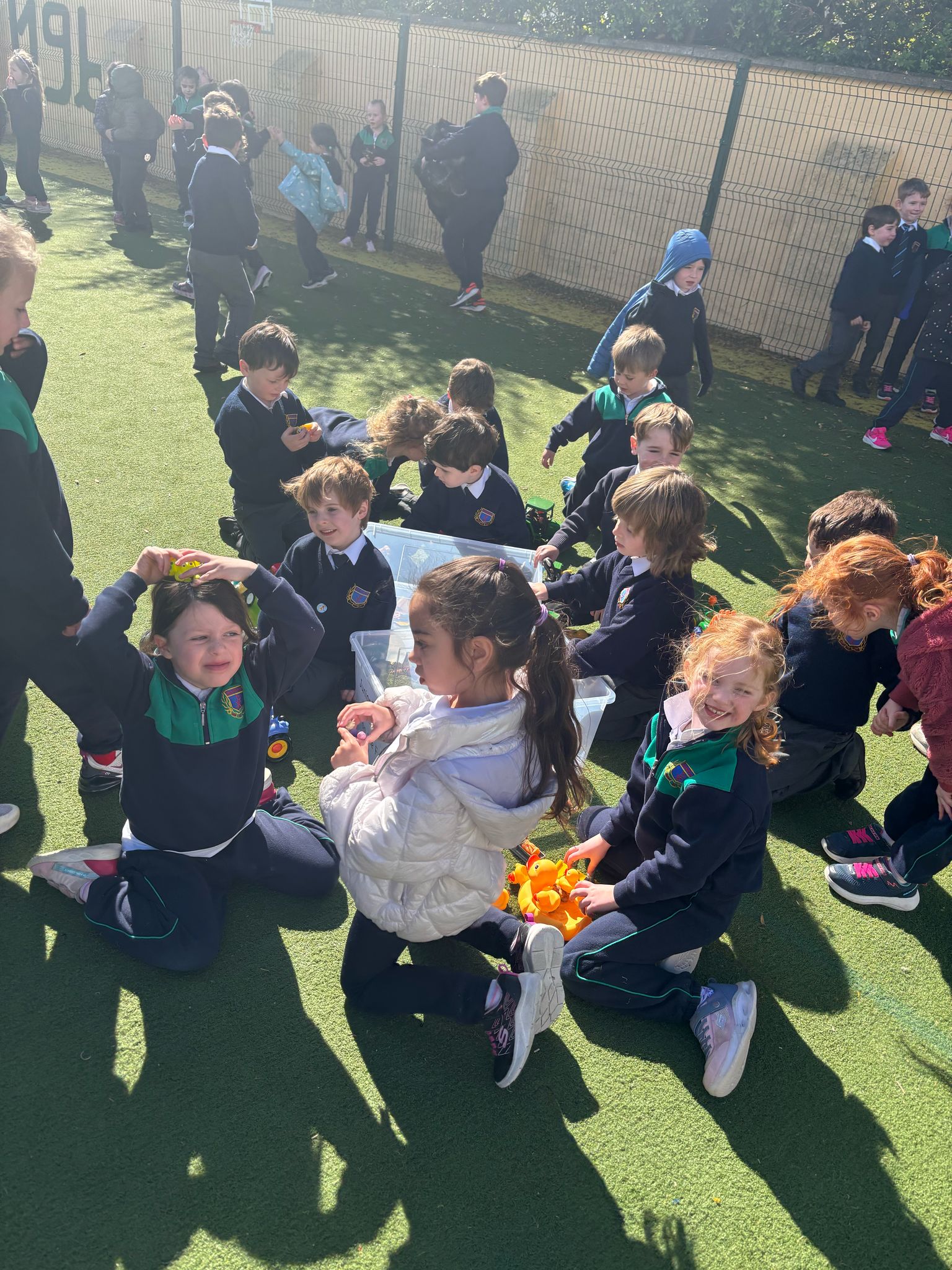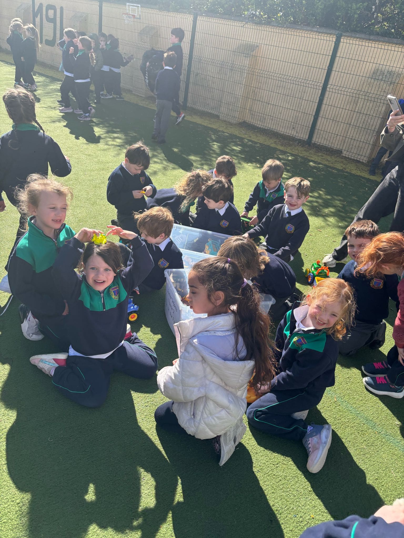 Ms. Brogan, Ms. Gallagher and Ms. McWeeney’s junior infants met up with their counterparts Ms.Godson and Ms.Carney’s junior infants from the girls school. They had great fun introducing themselves and making new friends. They can’t wait for the next playdate in their new friends yard next time.