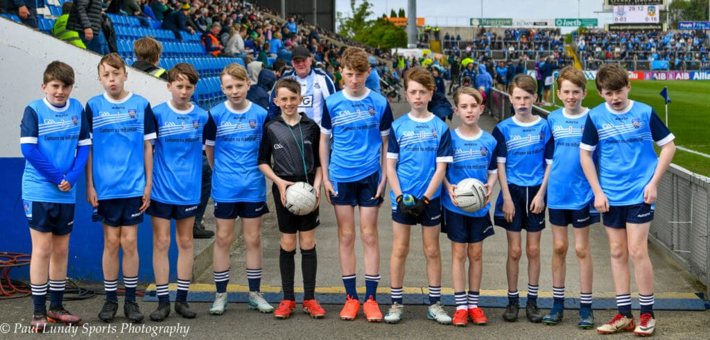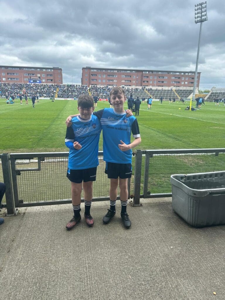 Well done to Adam and Cormac in 6th class who represented Dublin at half time in the Leinster Football semi-final between Dublin and Meath in Portlaoise at the weekend. The boys showed great skill and represented Dublin and St. Pius X BNS with great distinction.