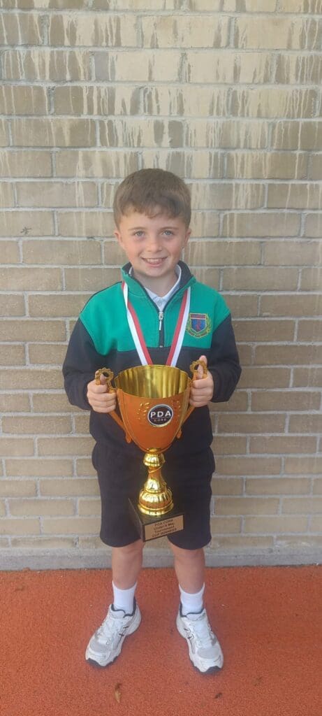 Buddy in Ms. Devenney’s 2nd class had a big win recently when his team won the PDA U9s Cup down in Cork. Buddy’s team bet Ring Mahon in the semi final before overcoming Dublin rivals Portmarnock. Well done Buddy and Crumlin United.