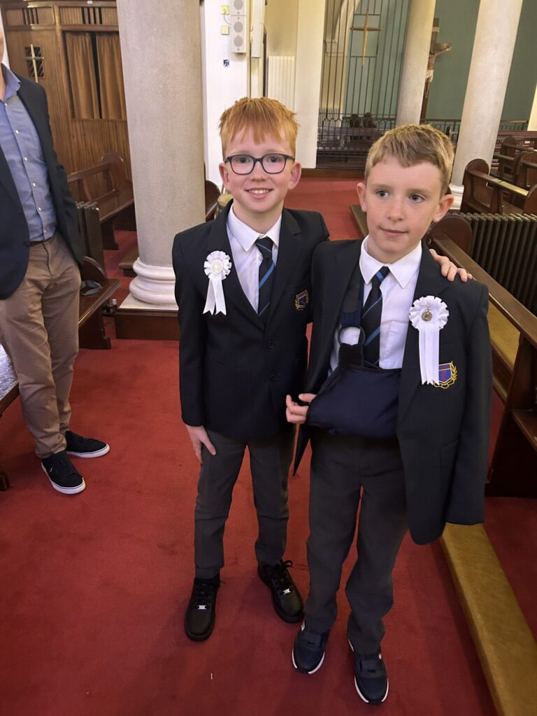 Sunday 25th May marked a special day in the St. Pius X BNS calendar as our 2nd classes celebrated their First Holy Communion. As always, it was a very happy morning as the three classes came together to celebrate the sacrament. Thanks to Fr Pat for celebrating the sacrament and to the parish team who helped organise the event. A special thanks to Ms. Devenney, Ms, O’ Sullivan and Ms. Pleamonn who helped prepare the boys for their big day. Lastly, thank to the Parents Association who organised a lovely reception for the boys in the school hall. The boys had great fun celebrating together before going off to celebrate with their families.