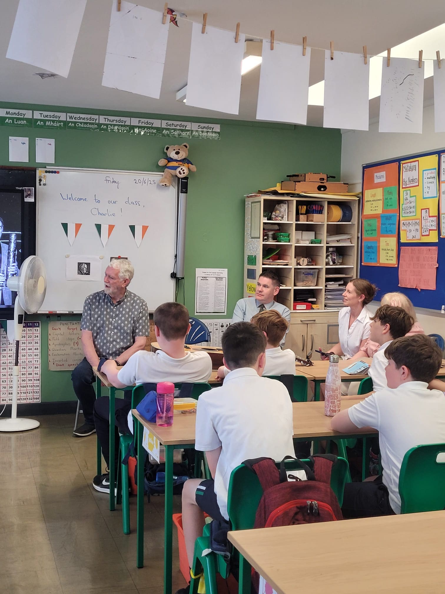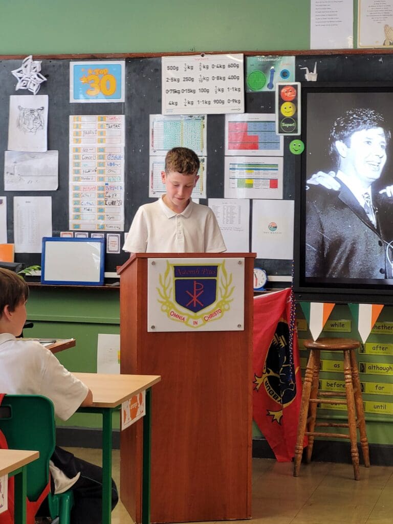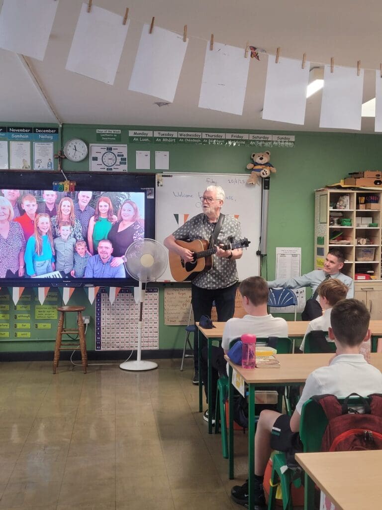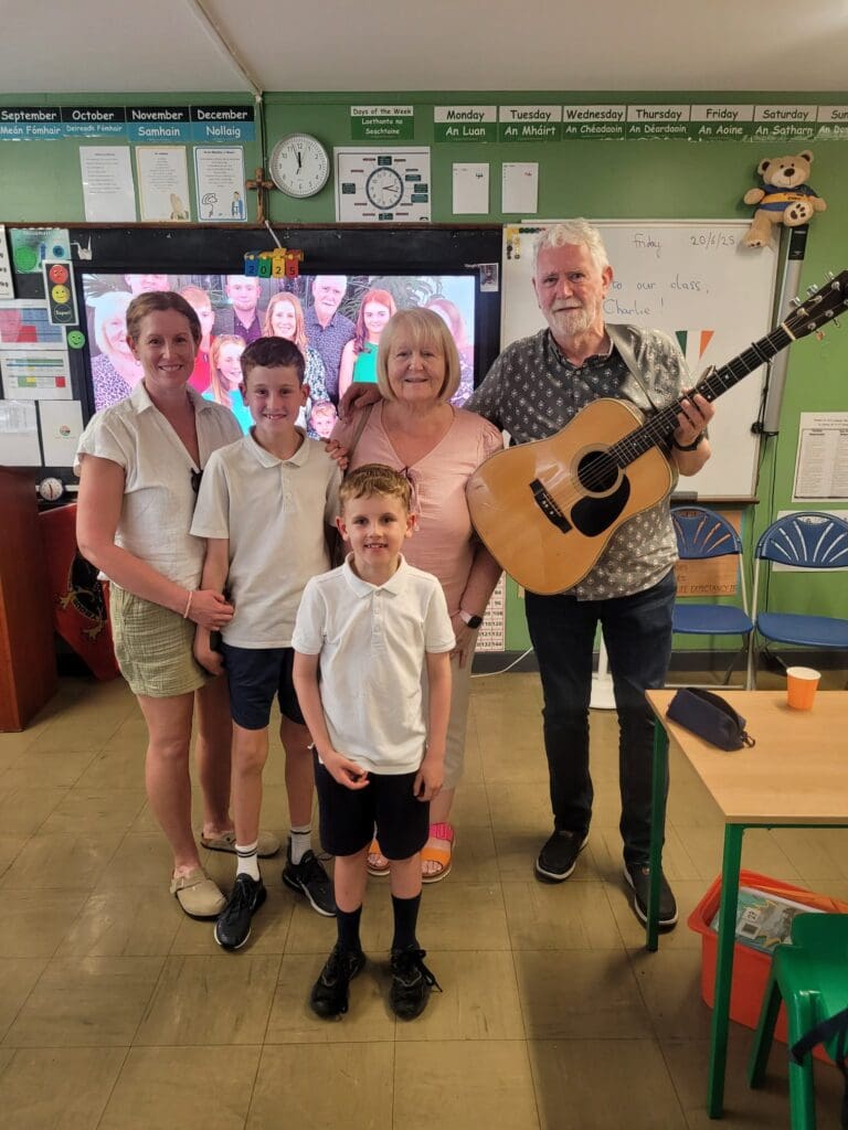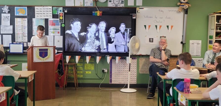 Leo, in Mr. Dillon’s class brought in a special guest as part of the project work the class has been recently completing. Leo’s project was on his grandad, Eurovision winner Charlie McGettigan. Leo delivered a very comprehensive presentation to the class (and his brother Eoin, who got to visit from Ms. Mason’s class) and was supported with a few songs by his grandad. It was a very enjoyable experience for everyone, even Mr. Coyle who stopped in for a visit.