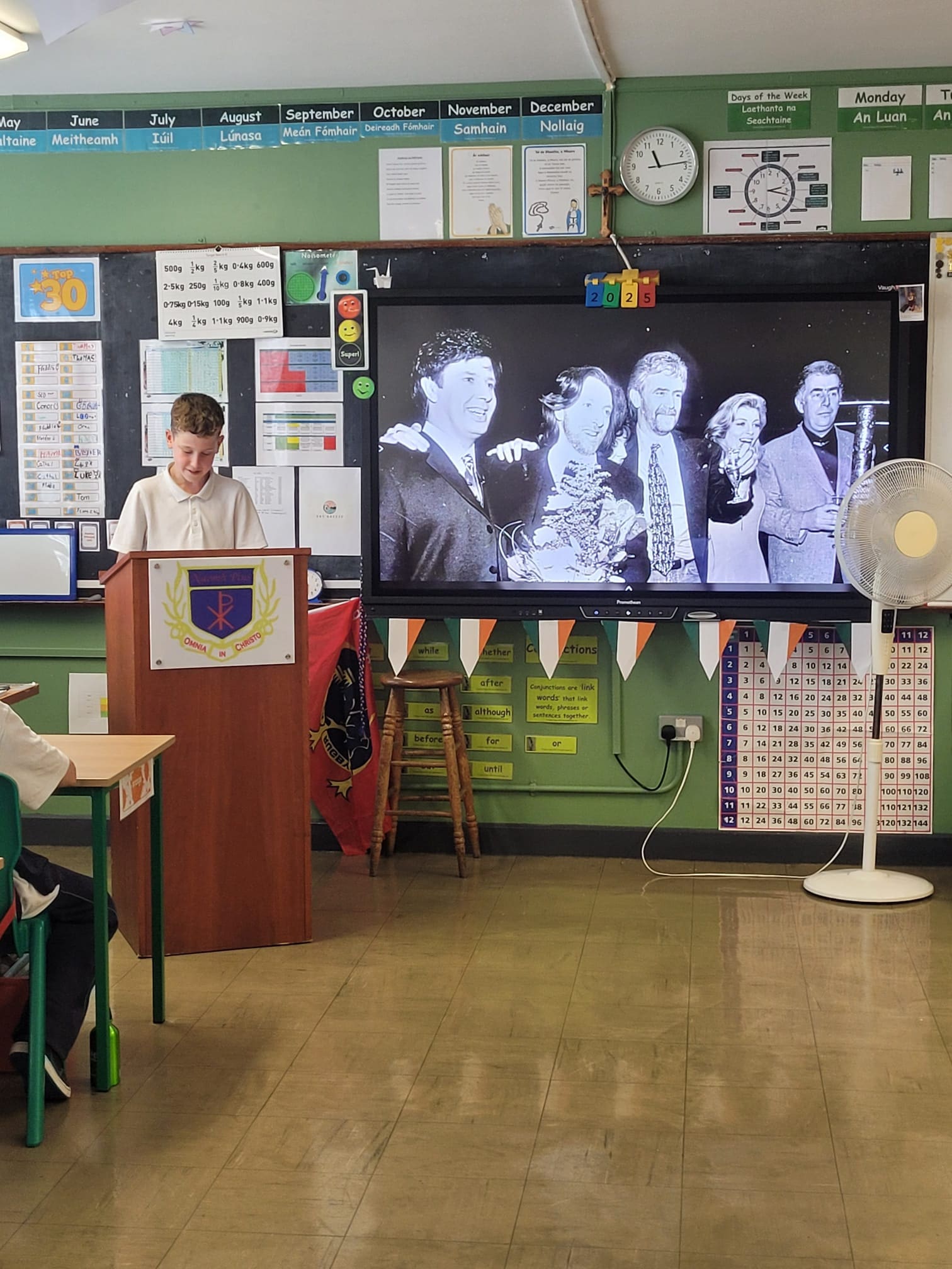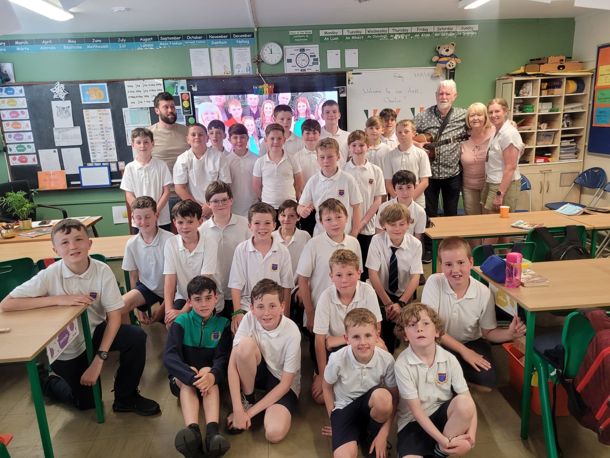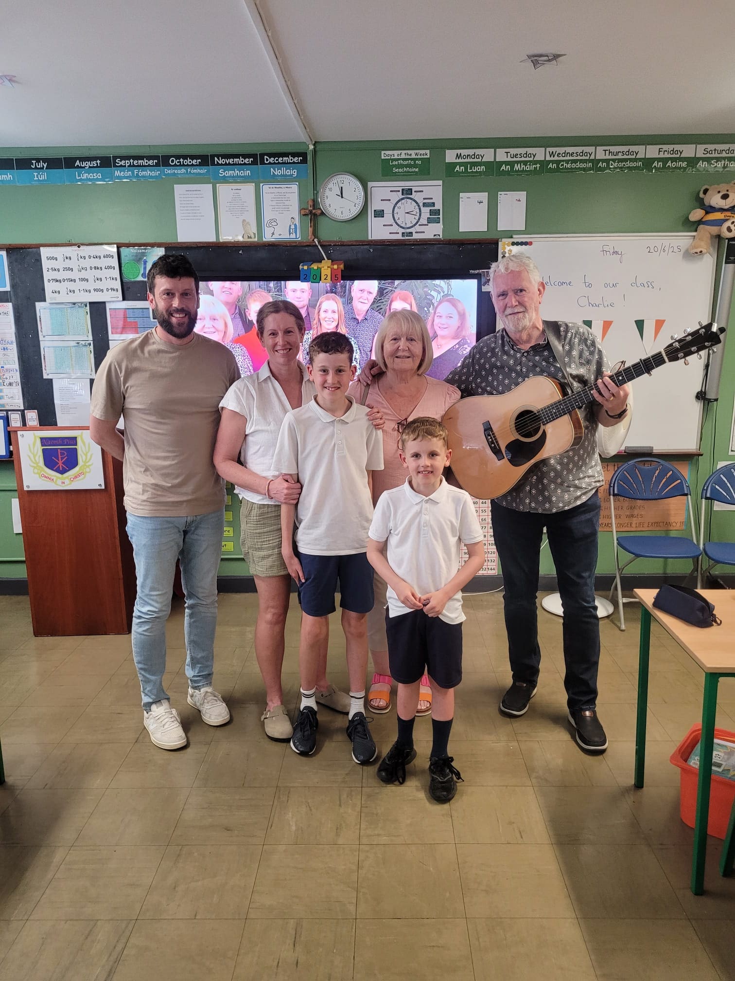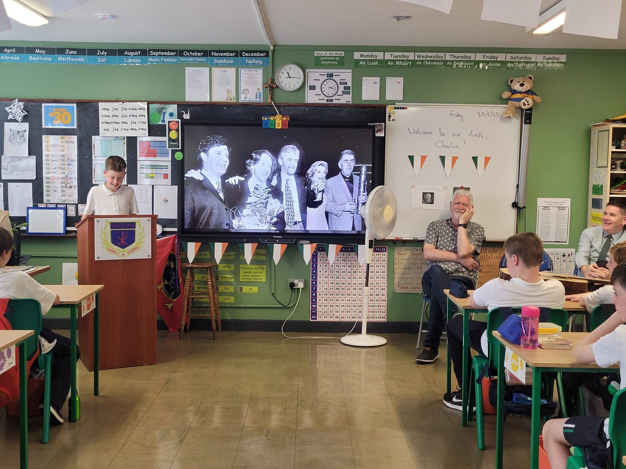 Leo, in Mr. Dillon’s class brought in a special guest as part of the project work the class has been recently completing. Leo’s project was on his grandad, Eurovision winner Charlie McGettigan. Leo delivered a very comprehensive presentation to the class (and his brother Eoin, who got to visit from Ms. Mason’s class) and was supported with a few songs by his grandad. It was a very enjoyable experience for everyone, even Mr. Coyle who stopped in for a visit.