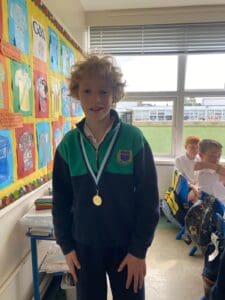 Well done to Dylan in Ms. Dunnes 3rd class who recently won gold at the Dublin athletics Championship in the 600m event.