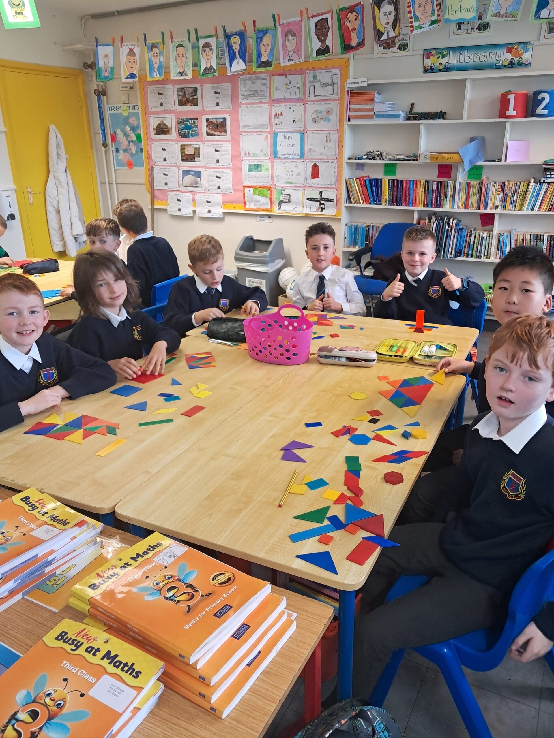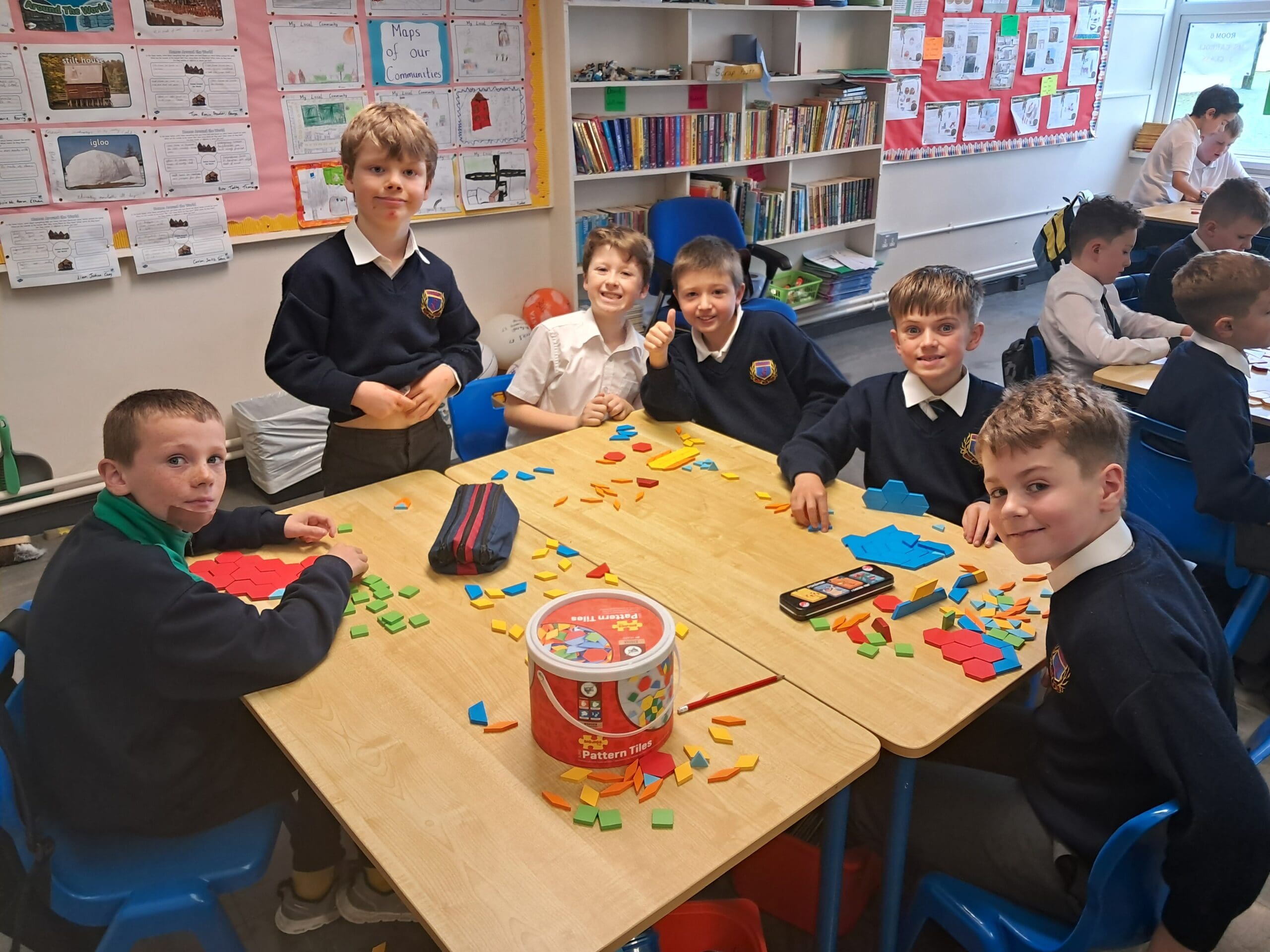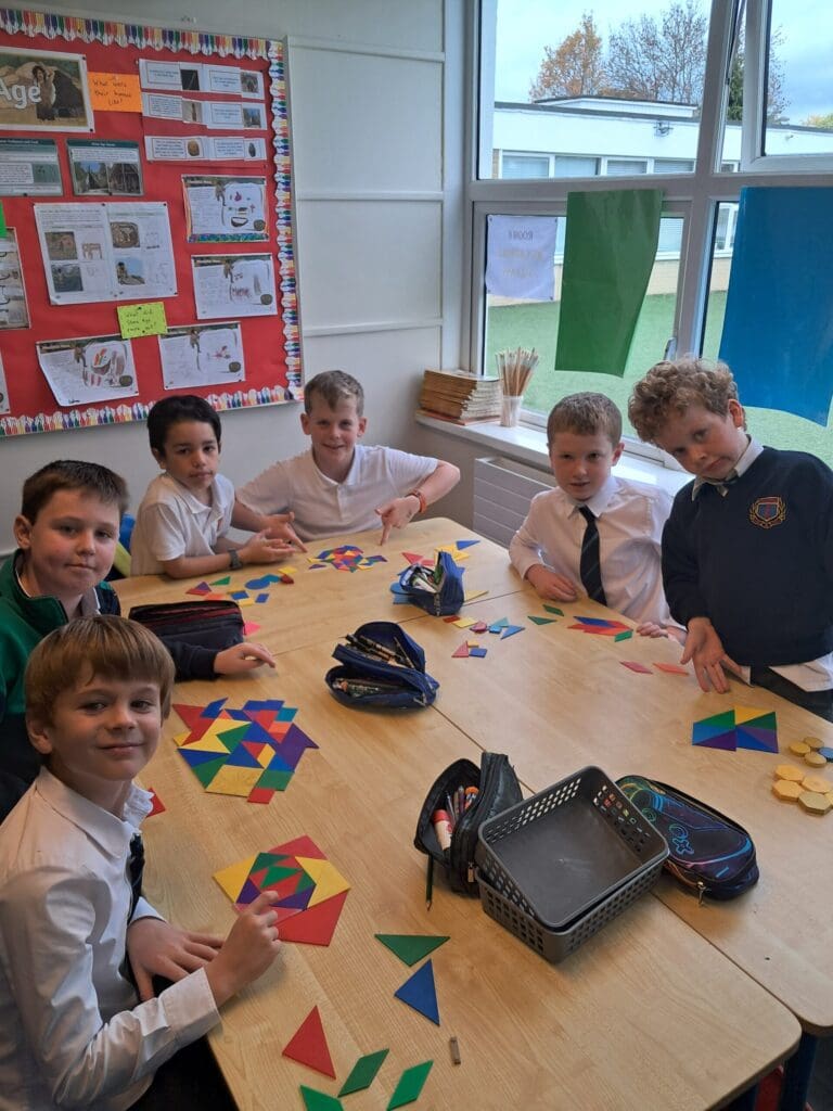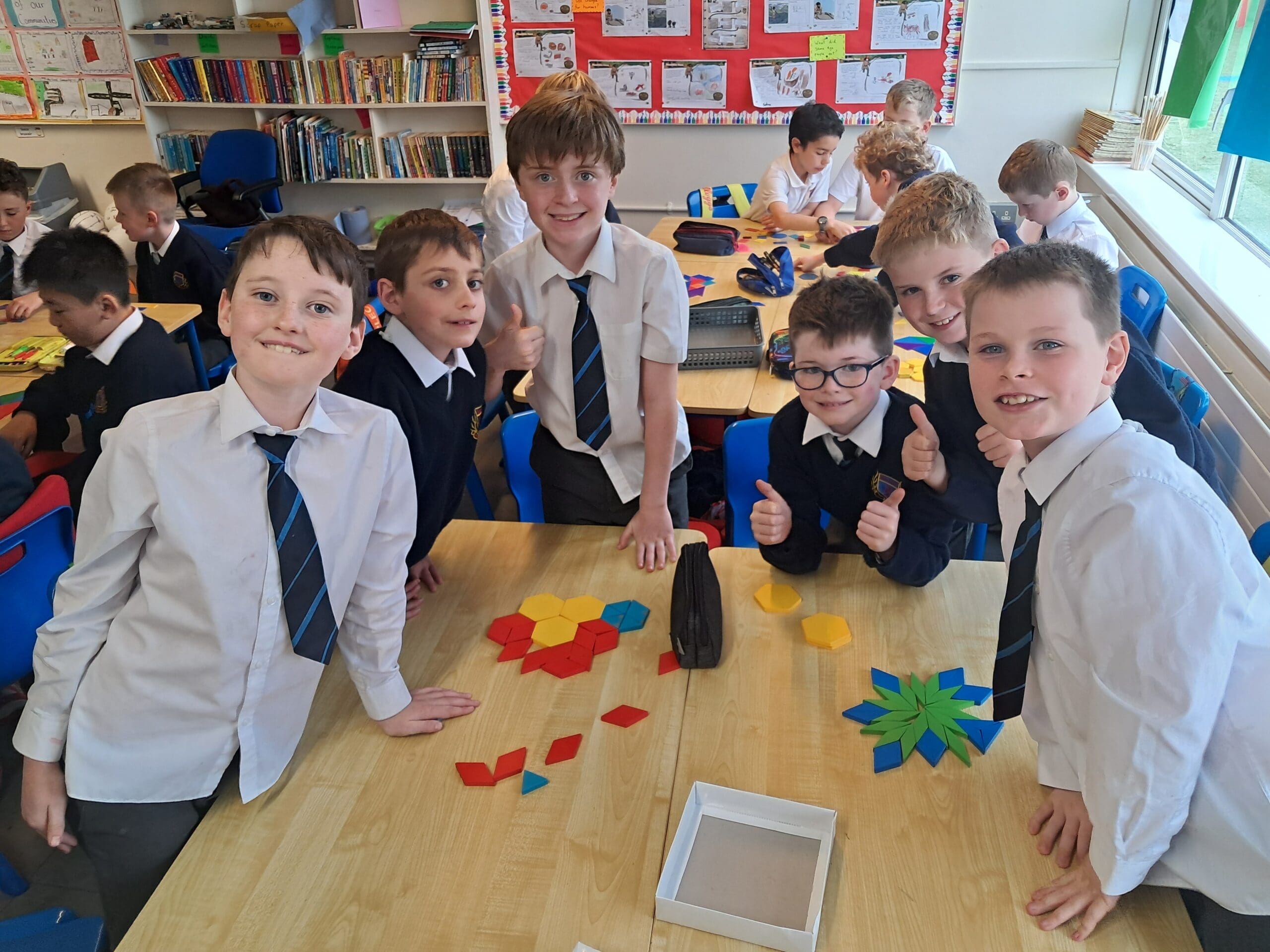 During Maths this week, the boys in Ms Carroll’s 3rd class have been exploring tessellation of 2D shapes. Take a look at some of the wonderful tessellating patterns they created while working in groups!