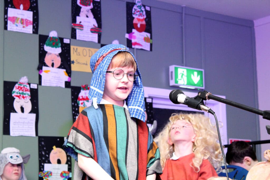 Ms. O’Dell’s Second Class lit up the stage this week with their spectacular performance of Lights, Camel, Action! The boys transported the audience straight to Bethlehem, where a panel of entertaining judges including Caesar, Inkeeper’s wife and Donkey critiqued each act with humour and enthusiasm. The hall was filled with music, energy and sparkle as every group took their turn in the spotlight. Congratulations again to Second Class. Your Lights, Camel, Action performance truly deserved a perfect ten!