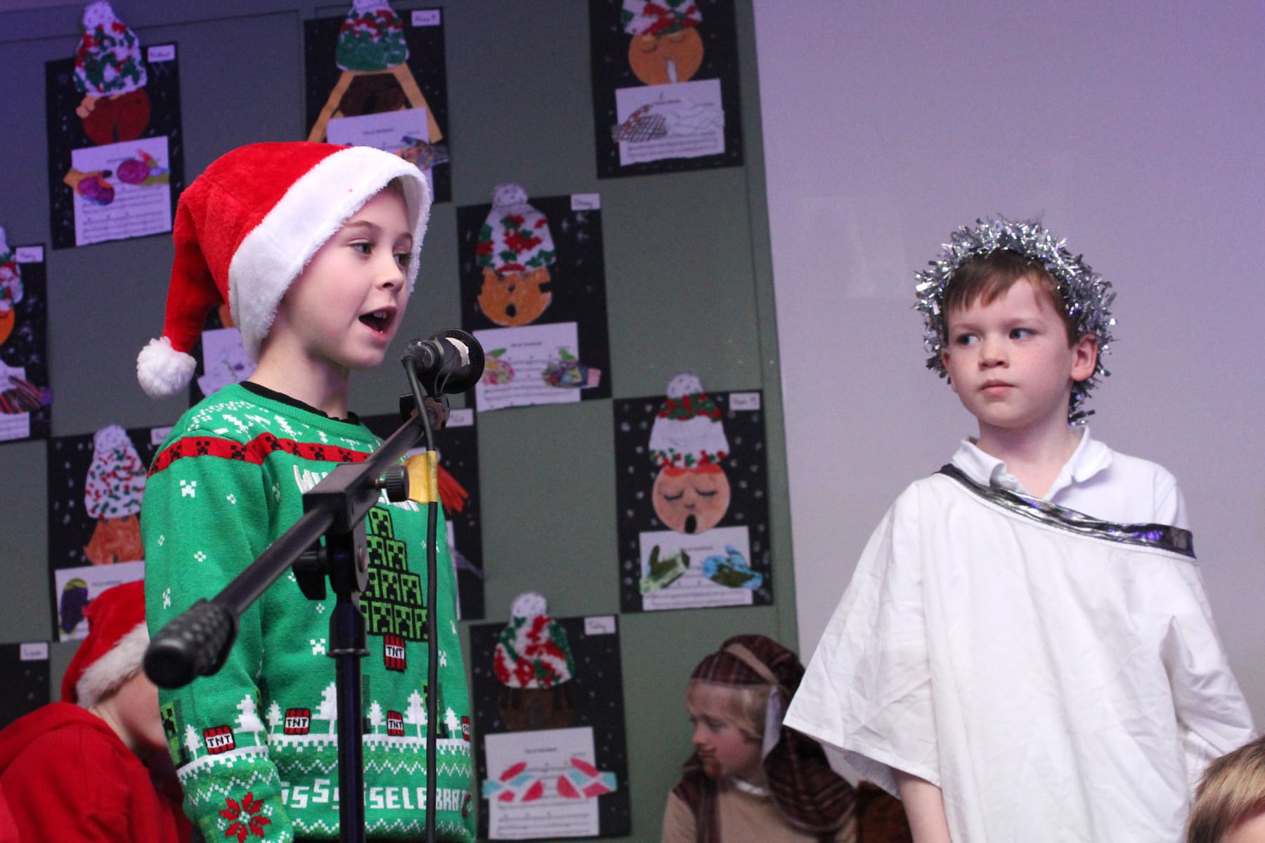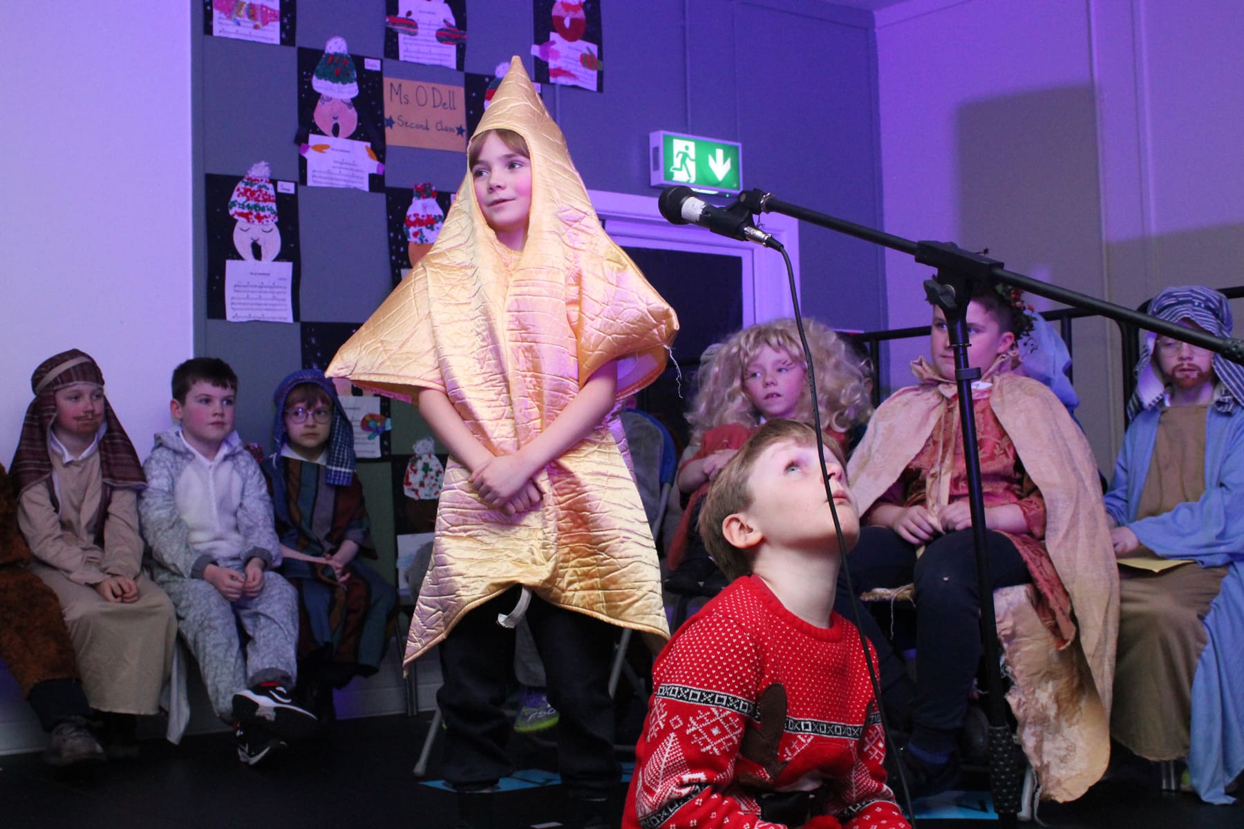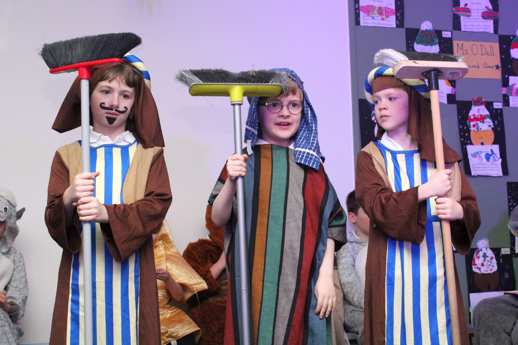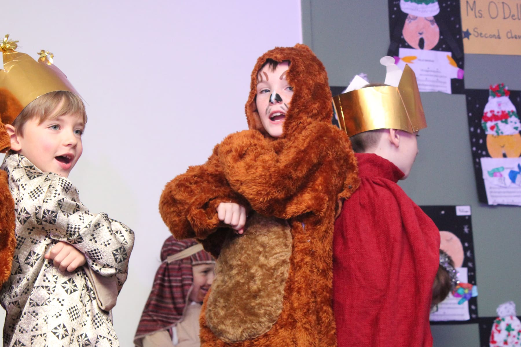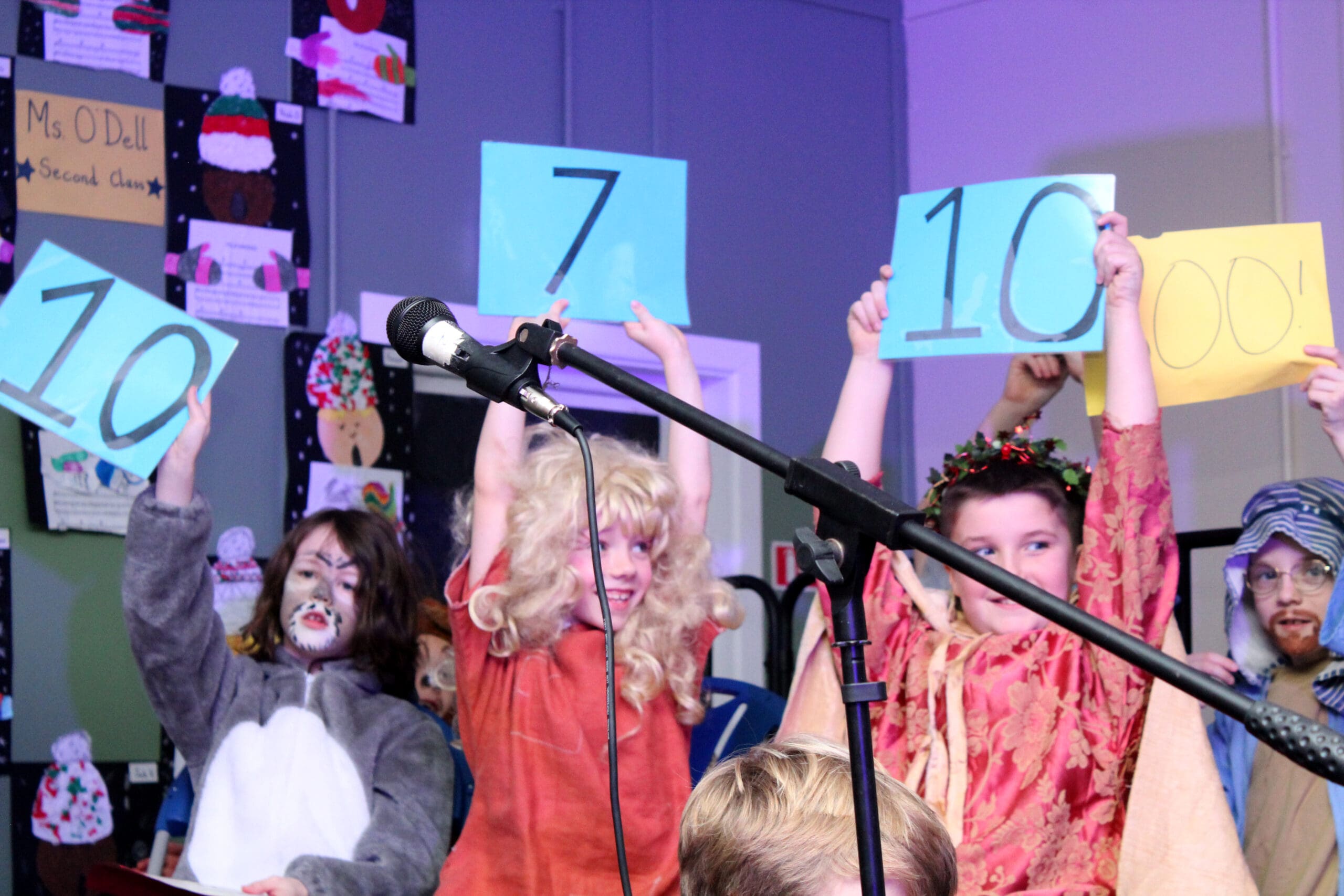 Ms. O’Dell’s Second Class lit up the stage this week with their spectacular performance of Lights, Camel, Action! The boys transported the audience straight to Bethlehem, where a panel of entertaining judges including Caesar, Inkeeper’s wife and Donkey critiqued each act with humour and enthusiasm. The hall was filled with music, energy and sparkle as every group took their turn in the spotlight. Congratulations again to Second Class. Your Lights, Camel, Action performance truly deserved a perfect ten!