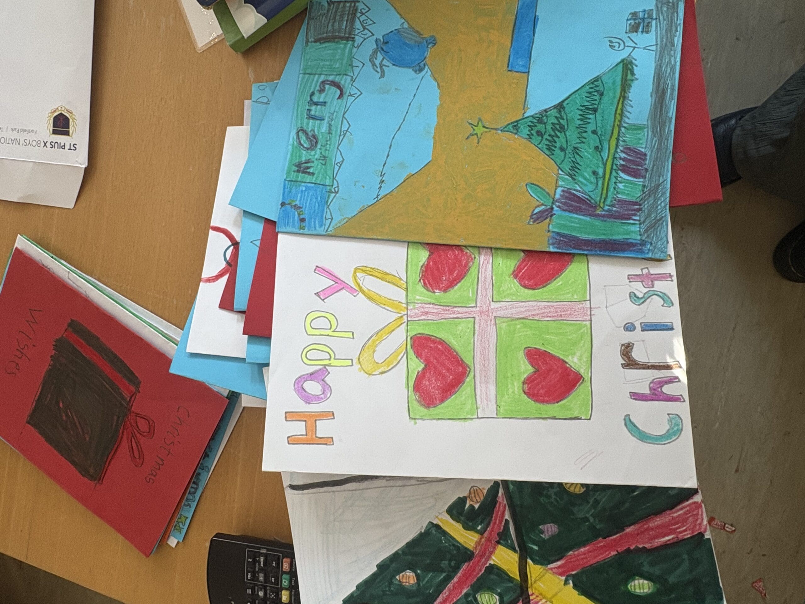 The boys in Ms. O’Dell’s 2nd Class created over 60 handmade Christmas cards for the residents and staff of St Joseph’s Nursing Home. Each card included festive drawings, messages, and well wishes.