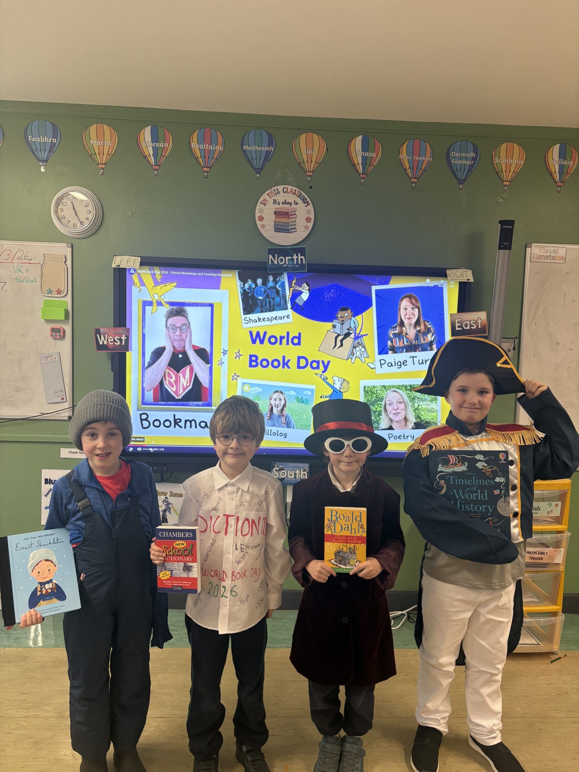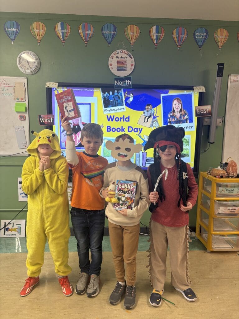 2nd class had great fun celebrating World Book Day today by dressing up as their favourite book characters. Ms.O’Dell’s class had a fantastic range of costumes including Willy Wonka, Napoleon, Ernest Shackleton and even a dictionary! It was wonderful to see so much creativity and enthusiasm while celebrating our love of reading.