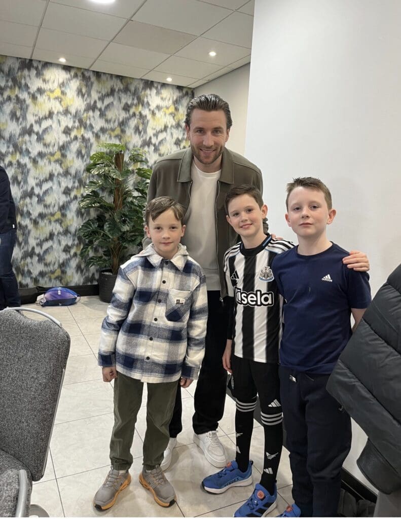 Harry Ryan had an exciting trip to Newcastle where he met Paul Dummett. Harry’s brother, Ben, had the amazing opportunity to be the Newcastle mascot for the match against Manchester United. Harry proudly cheered him on.