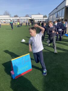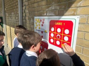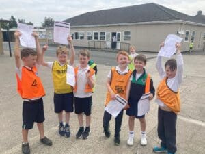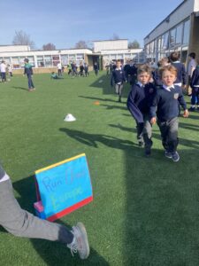 We have an Active Walkway around our school which we often use for different activities such as Orienteering in PE, Addition and Subtraction challenges and shape and space challenges during Maths Week. Our Active Walkway is used throughout the year for different events and also for everyday activities. Here are some photos below!
