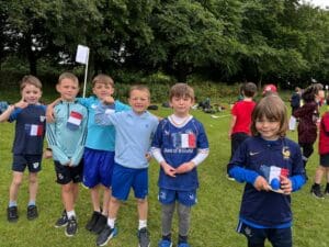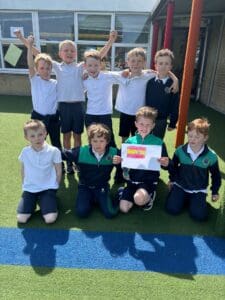 1st class (currently 2nd class) took part in a soccer blitz. Each team had a country name and a lot of time went into preparing for the matches. The teams worked well together showing lots of ‘team-talk’ and passing the ball to one another.