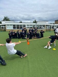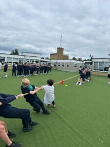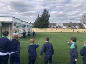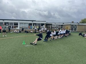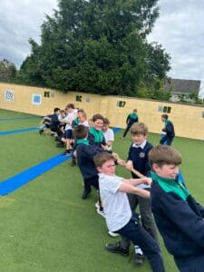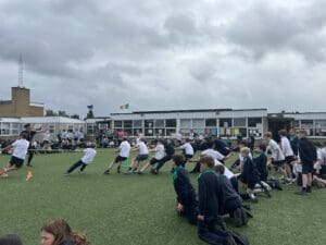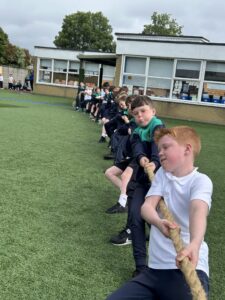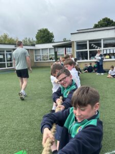 5th class Boys had a tug of war against 5th class girls. Many classes were invited out from both school to show support.