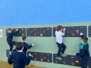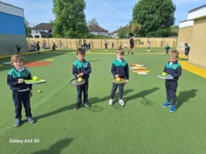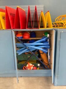 We have lots of sports equipment in our school which we can access and play with everyday in PE, during yard time and sometimes during class time if we need a movement break. Here are some photos of what we have! 3rd – 6th class also enjoy playing football in the Back Yard everyday during lunchtime and each child can bring in their own football!