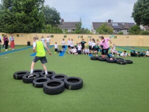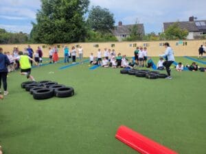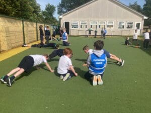Junior Infants and Senior Infants were shown by the Playground Leaders and Active Schools Committee how to exercise in circuits. As you can see everyone had lots of fun!