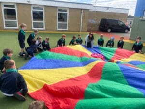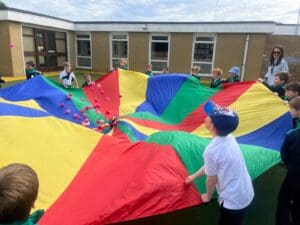 We did parachute games during Active Week. The infant classes thoroughly enjoyed it – as you can see from the photos below. Smiles all around!