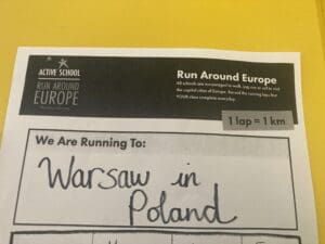 All of our classes in St Pius X BNS from Junior Infants to 6th class are currently taking part in the ‘Run Around Europe’ Challenge. The challenge started in February and is ‘running’ for 4 weeks! Every child’s lap count is taken and added to their class overall laps each day (1 lap = 1 km). The most fun part of it is, each class combines their kilometres to bring them to many capitals across Europe!