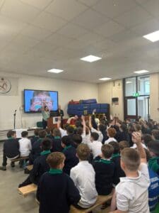 We had ‘Mick Dowling’ as our guest speaker during Active Week. We teamed up with the Girls School and had a big discussion (with Q&A) in our GP room. Mick was very inspirational and motivated lots of children to persevere with sport if they want to succeed. The main message was to have fun while working hard at a sport! Thanks to Mick Dowling for visiting and sharing your wisdom with us.