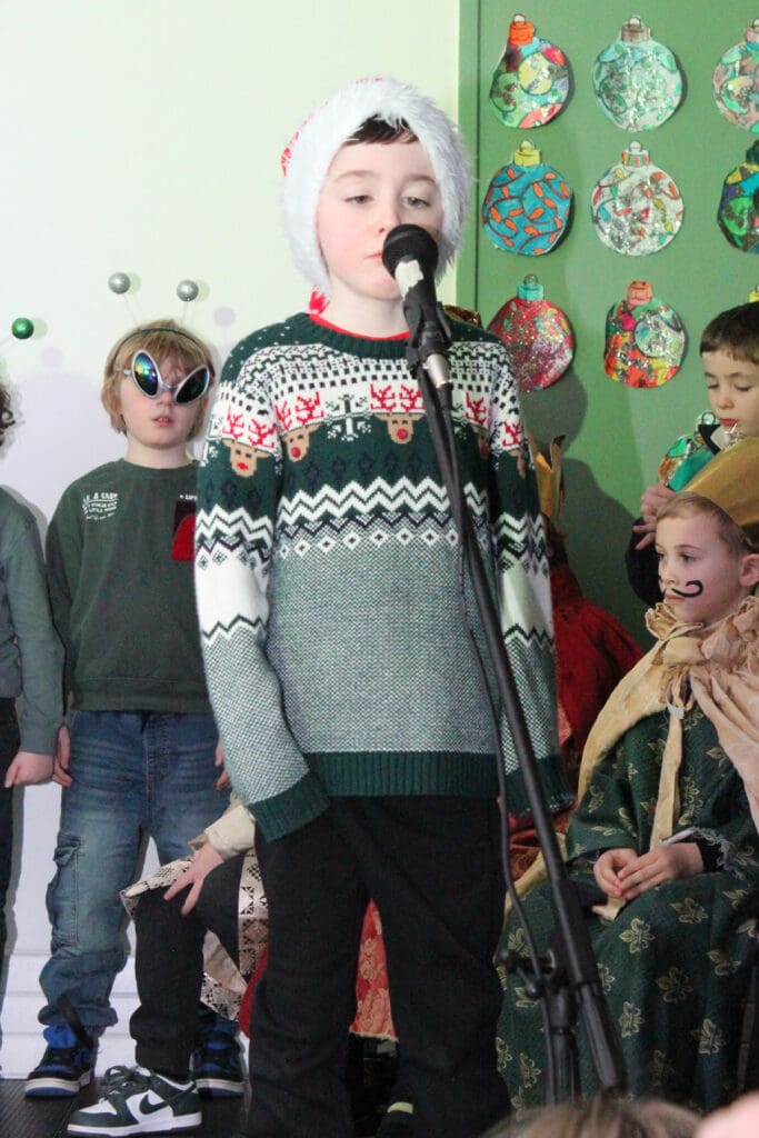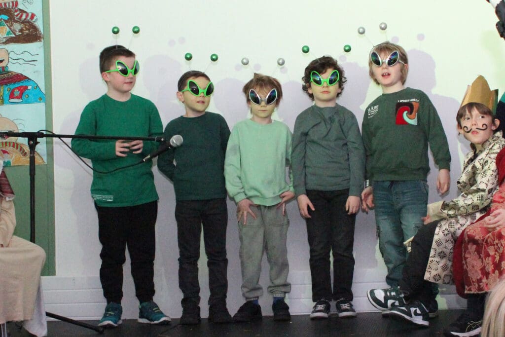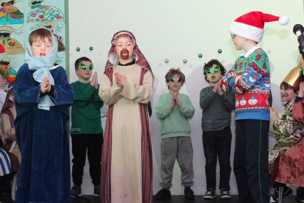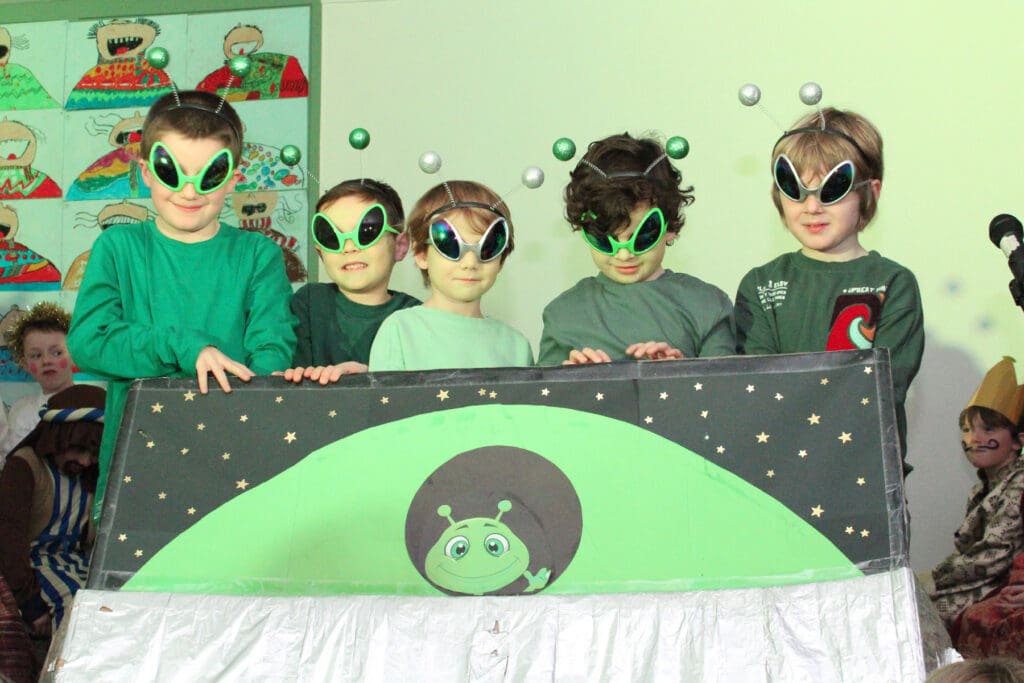 The big finale of the St. Pius X BNS Christmas play was left to Ms. O’ Regan and her boys who performed the classic Christmas with the Aliens. Make Up and Costumes went all out for this one with some of the boys unrecognisable in their new look.
