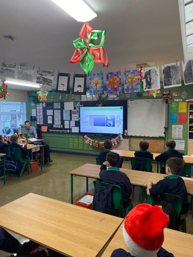 Mr. Dillon’s 5th class we’re treated to a very special visitor in December, Dr. Colm O’Kane (Luke’s Dad!)
