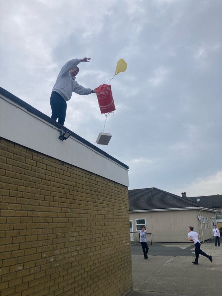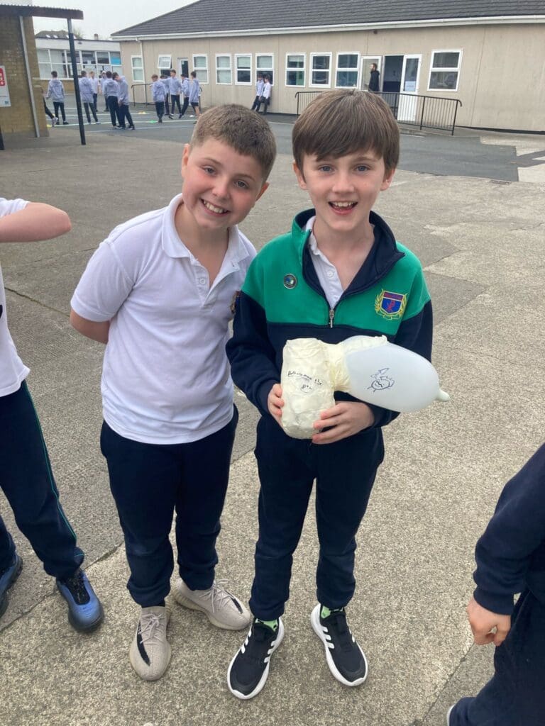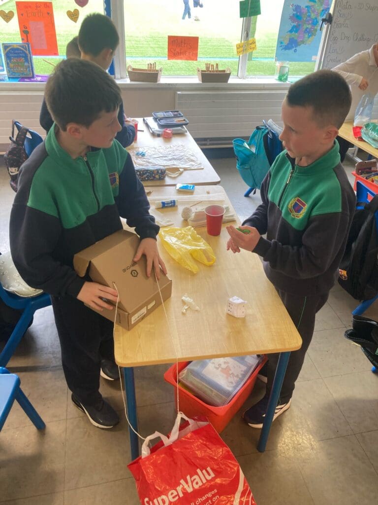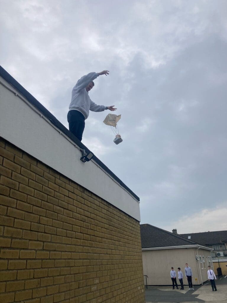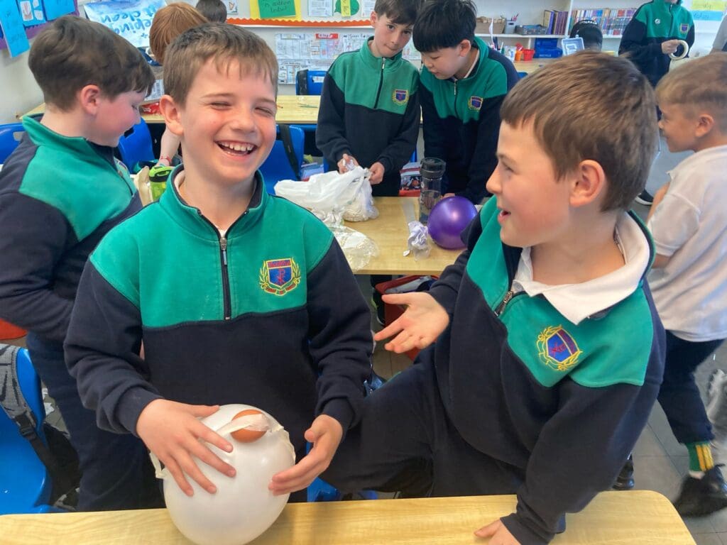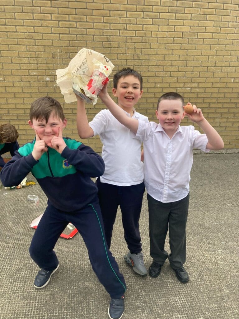 The boys in Ms. Herity’s class recently took part in an ‘Egg-drop Challenge’. Their objective was to design and make a container that would protect an egg from breaking when dropped from a height. Thanks to Mr. Deary for going up on the roof and doing the honours of dropping each project. Not all the eggs survived the drop, but lots of fun was had in the process!
