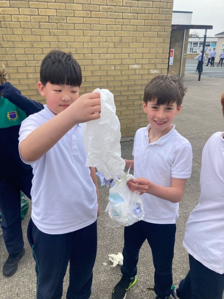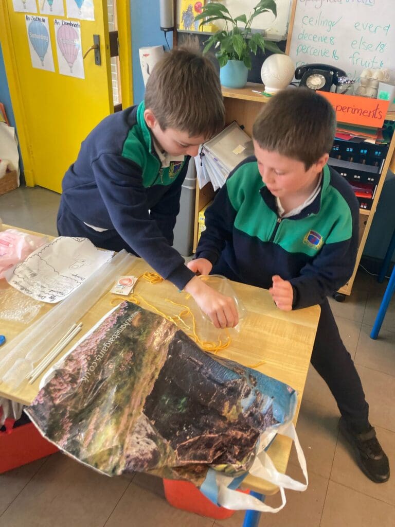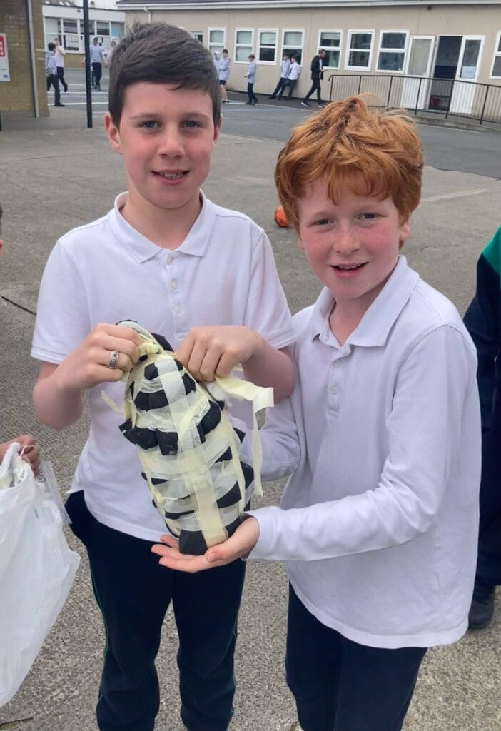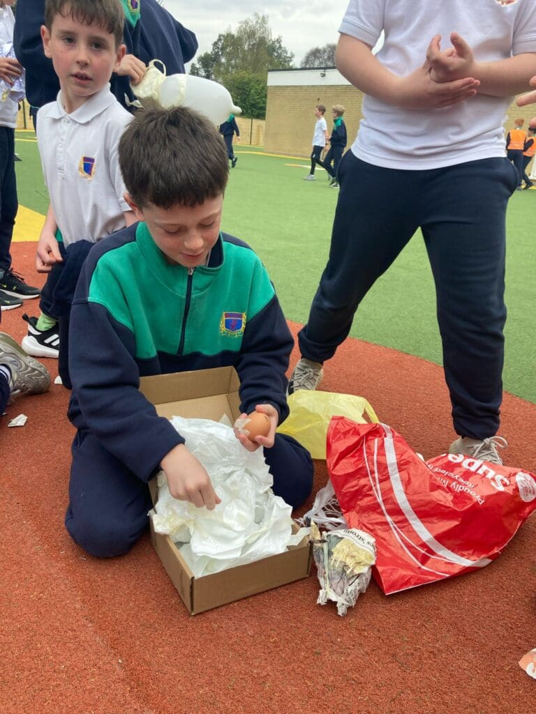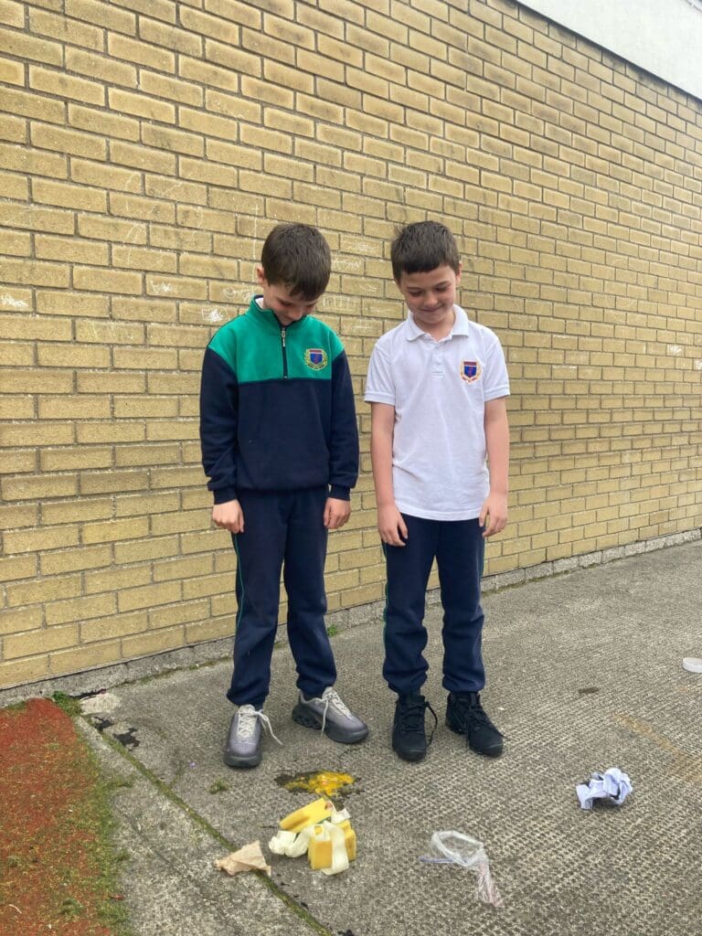 The boys in Ms. Herity’s class recently took part in an ‘Egg-drop Challenge’. Their objective was to design and make a container that would protect an egg from breaking when dropped from a height. Thanks to Mr. Deary for going up on the roof and doing the honours of dropping each project. Not all the eggs survived the drop, but lots of fun was had in the process!