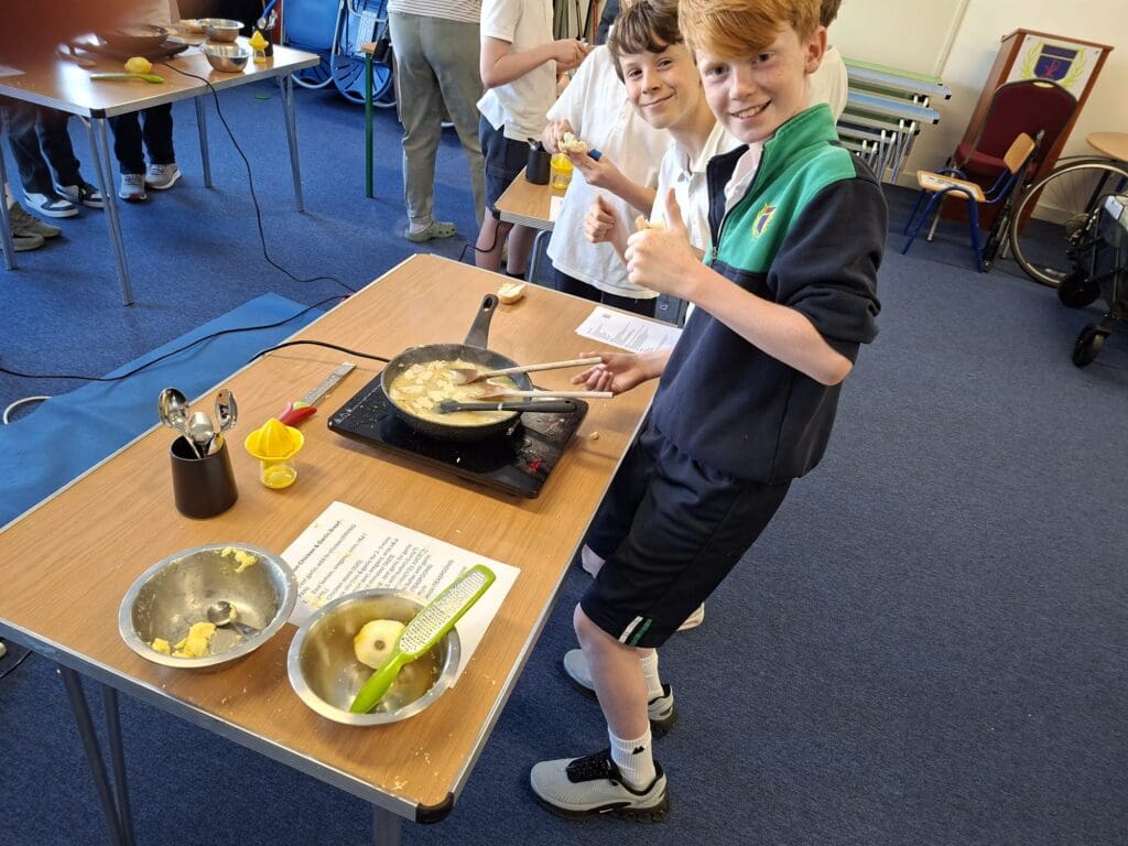 The boys in 4th class were under pressure in the kitchen this week as they made some dishes with Keri. The boys are learning some delicious life skills as well as how to prepare food and meals safely. Thankfully, after all the hard work, the boys get to enjoy the product of their endeavors. Well done boys.