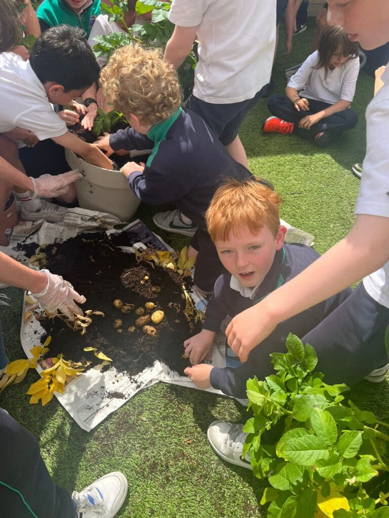 The green fingers in Ms. Pleamonn’s class paid off today as the boys got reap what they sowed as they harvested their early potatoes. It was a great crop this year and they managed to avoid any diseases such as blight to ensure every boy got their own spud. Well done boys