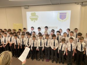 Pictured is the Choir recently performing at our Ceolchoirmeacha for Seachtain na Gaeilge 2023!